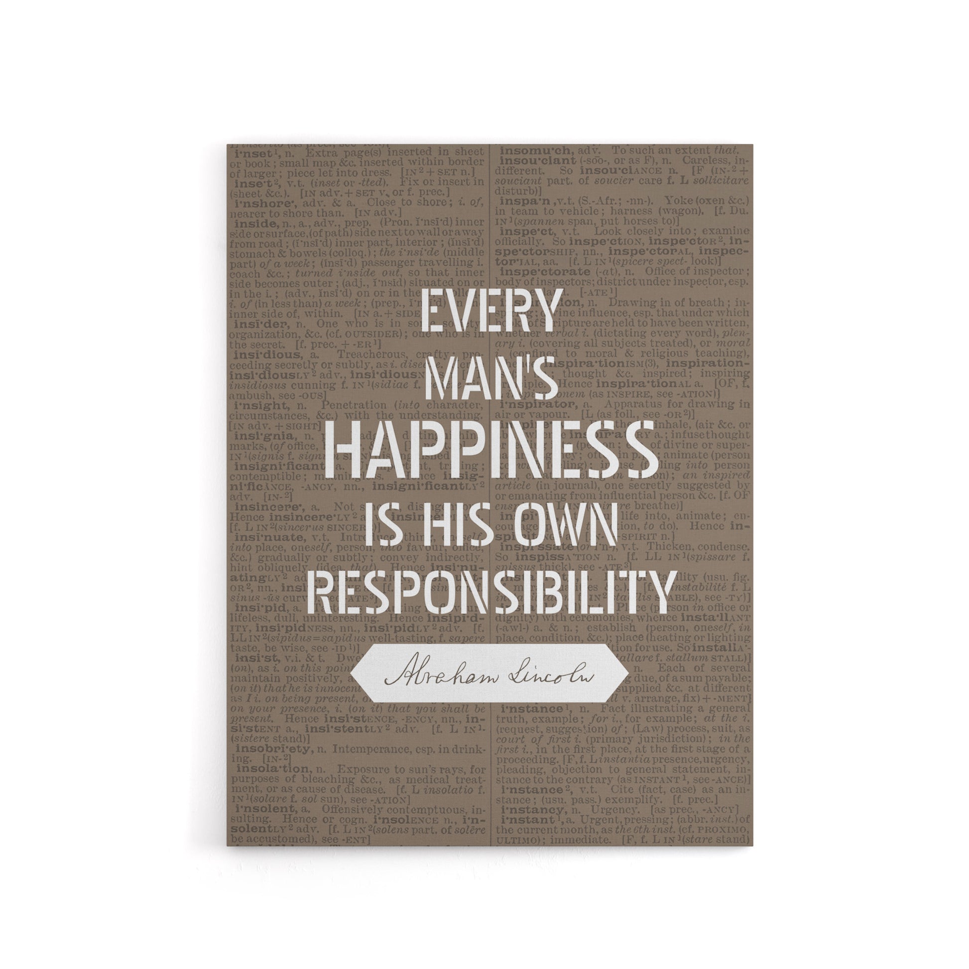 “Dictionary Page Quote Abraham Lincoln Happiness Responsibility” comes to life as a wrapped canvas print crafted for ready-to-hang display. This wrapped canvas print elevates your home with artful detail and vibrant colour. Versatile and ready to hang, it suits living rooms, bedrooms, offices, or creative studios. A stylish choice that adds personality and visual interest to your walls. Elegant typography with Lincoln’s “Most Folks Are as Happy as They Make Up Their Minds to Be,” ideal study décor.