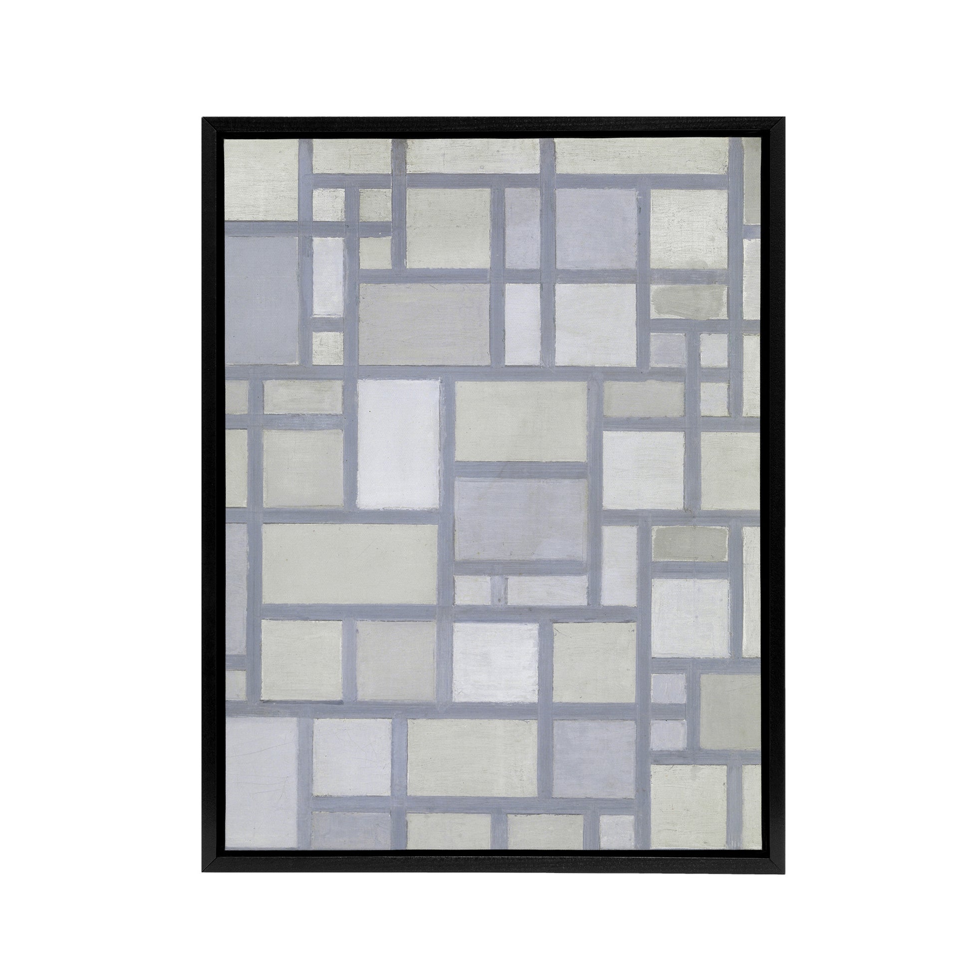 Abstract Composition with Gray lines Mondrian Framed Canvas Wall Art