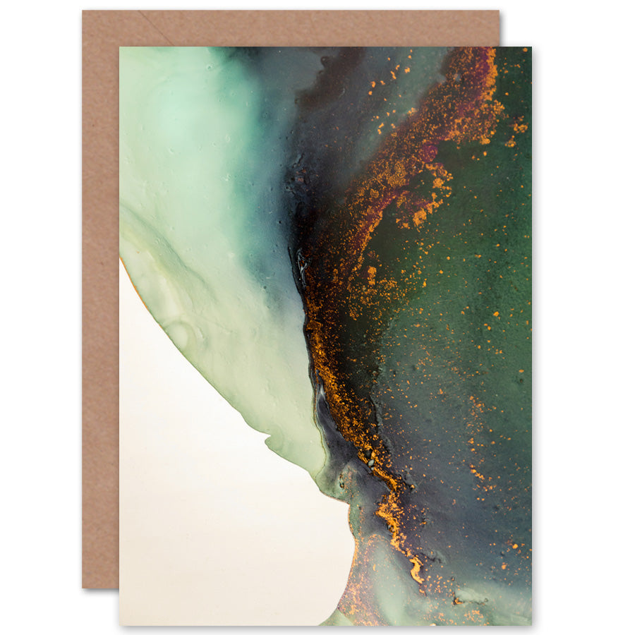 Abstract Paint Gold Green Greetings Card