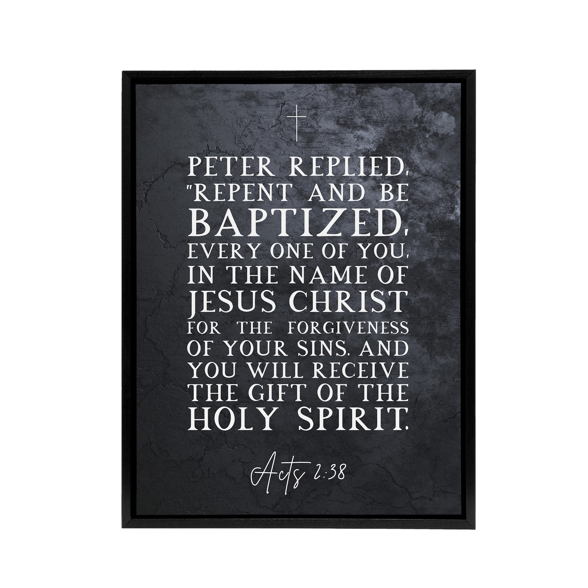 Acts 2 38 Repent And Be Baptized Bible Quote Black Framed Canvas Wall Art