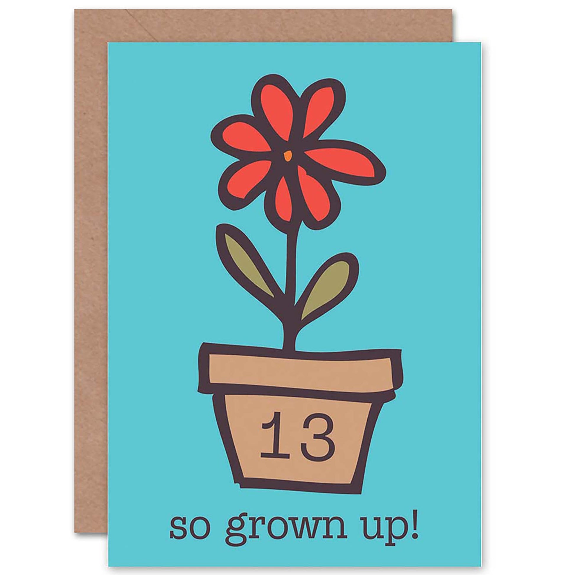 Age 13 Teenager So Grown Up Flower Pot Teen Birthday Card