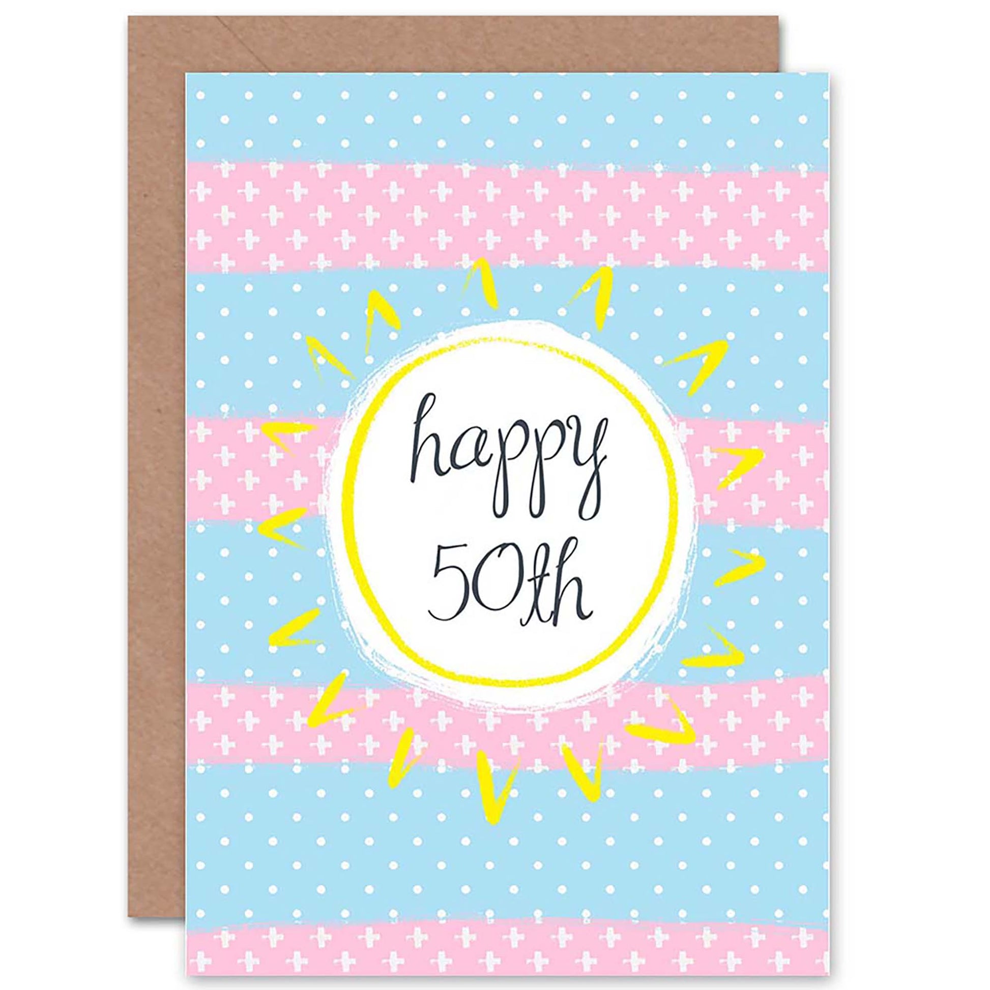 Age 50 Pink Blue Sun Stripes Adult Birthday Card