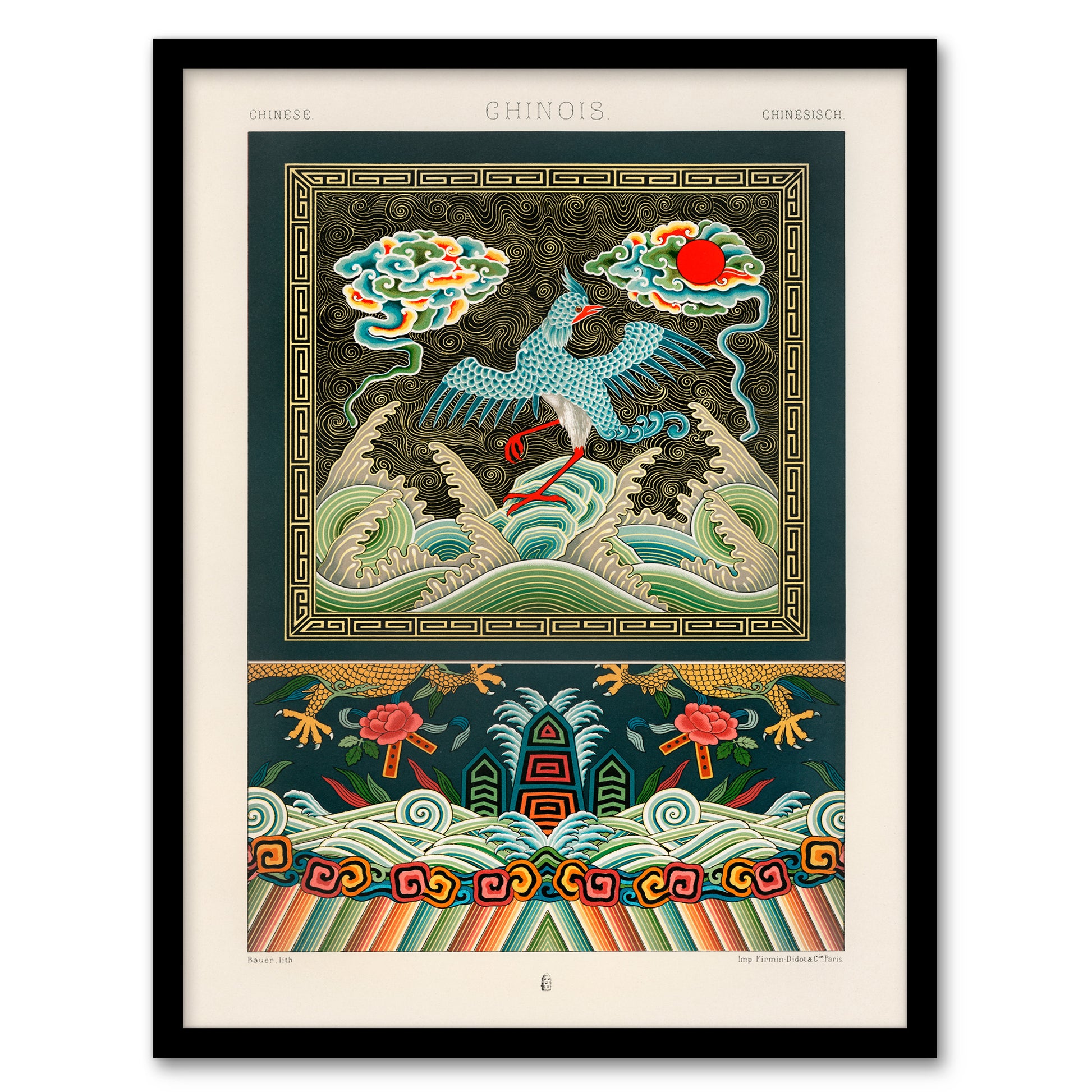Albert Racinet Framed Wall Art Print Chinese Patterns with Birds Home Décor