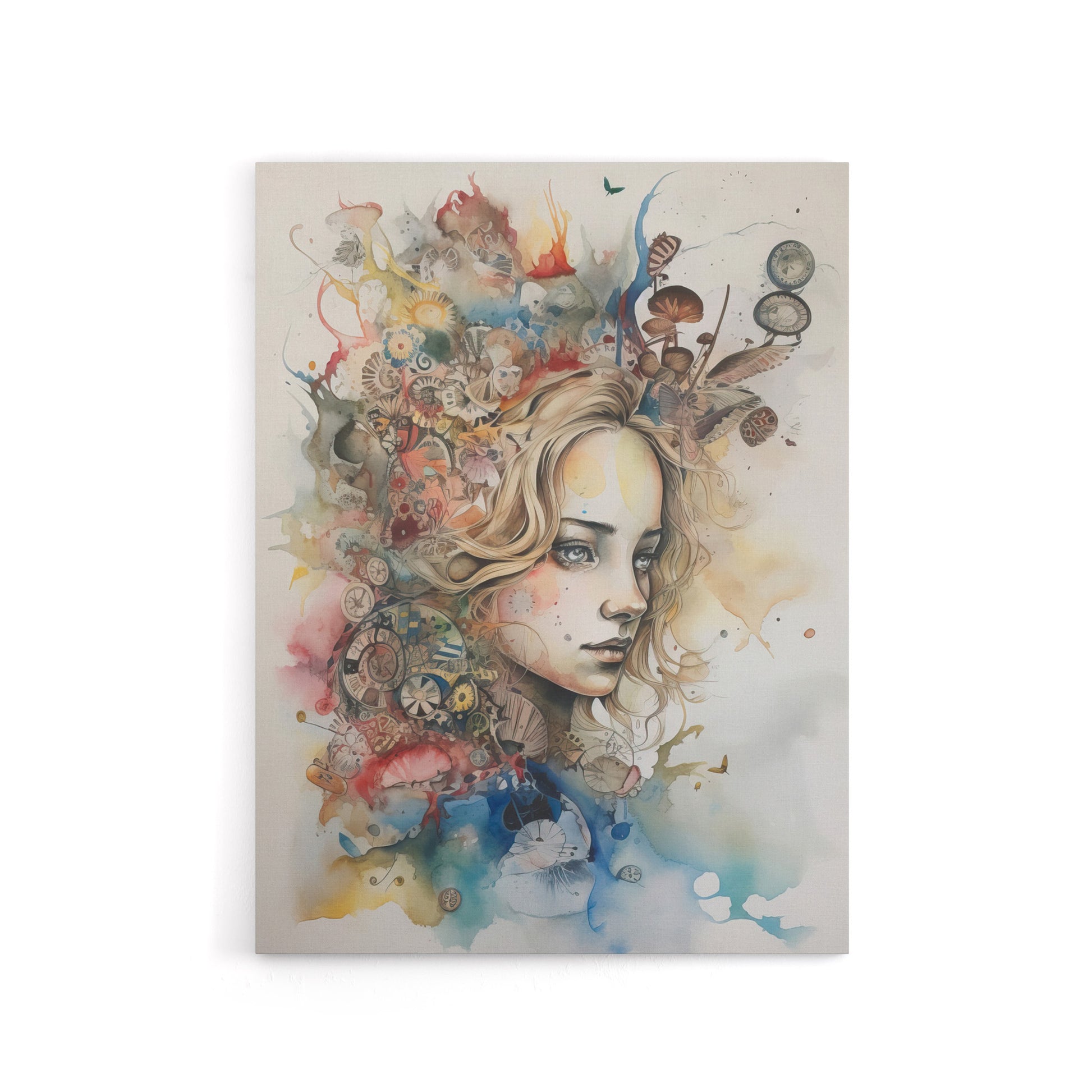 “Alice In Wonderland Portrait Watercolour Whimsical Magical Adventure Painting” comes to life as a wrapped canvas print crafted for ready-to-hang display. This wrapped canvas print elevates your home with artful detail and vibrant colour. Versatile and ready to hang, it suits living rooms, bedrooms, offices, or creative studios. A stylish choice that adds personality and visual interest to your walls. Dreamy heroine surrounded by whimsical motifs, timeless image celebrating curiosity.
