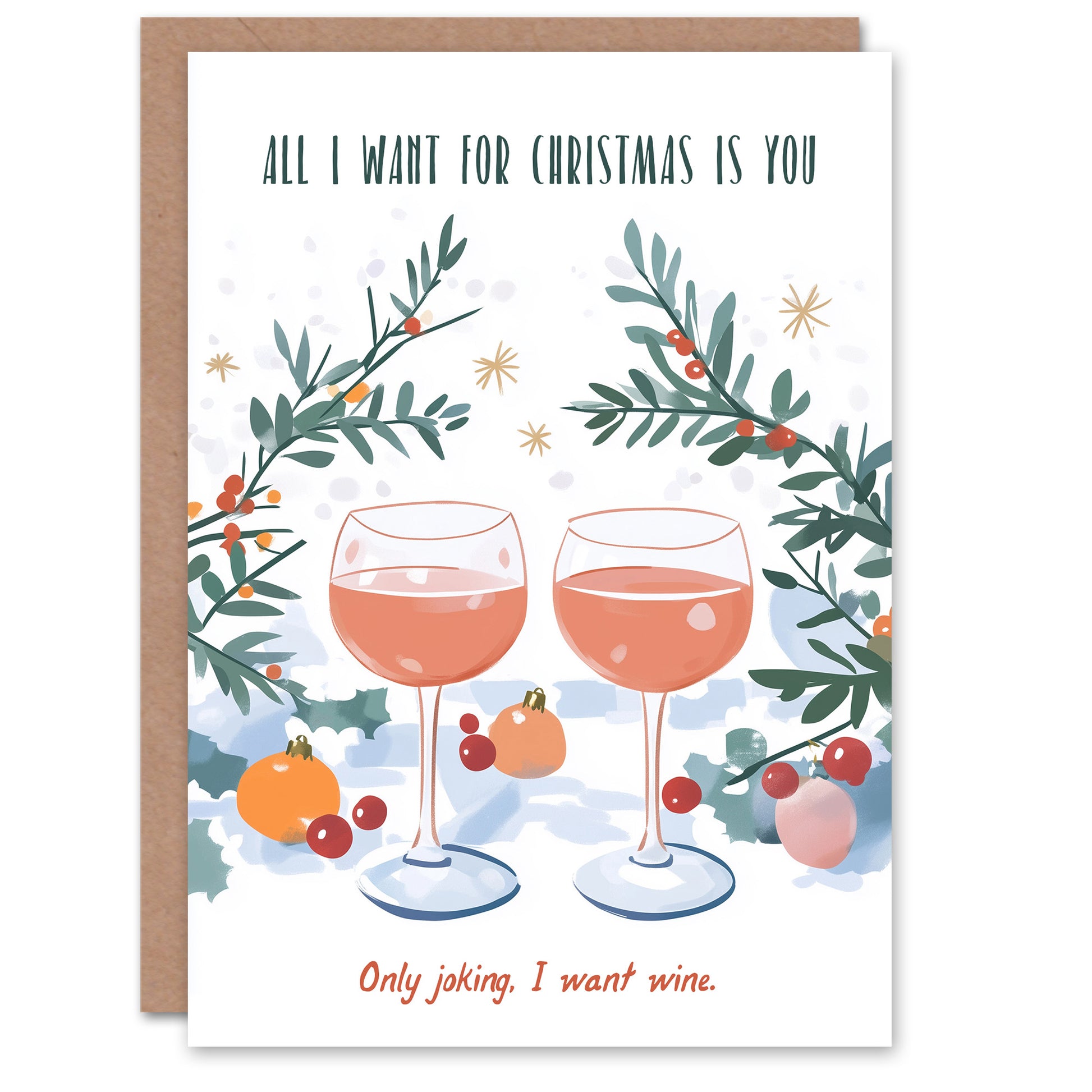 All I Want Is You Only Joking Funny Wine Lover Christmas Card
