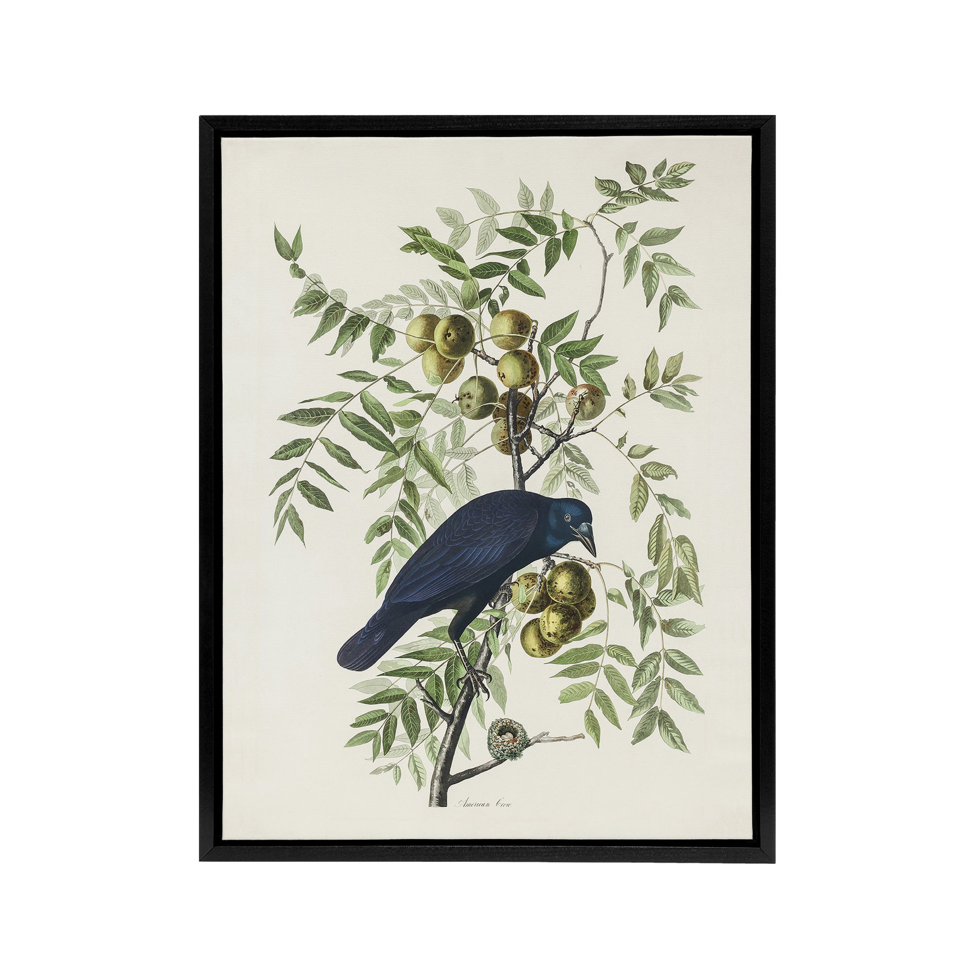 American Crow on Walnut Tree Audubon Nature Black Framed Canvas Wall Art