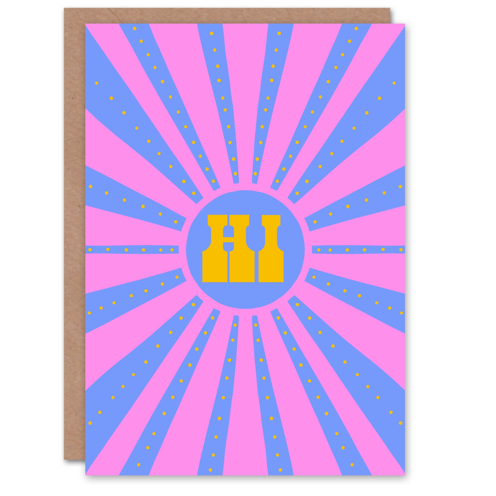 Art Card Hi Groovy Pink Blue Sun Ray Pattern Retro Design