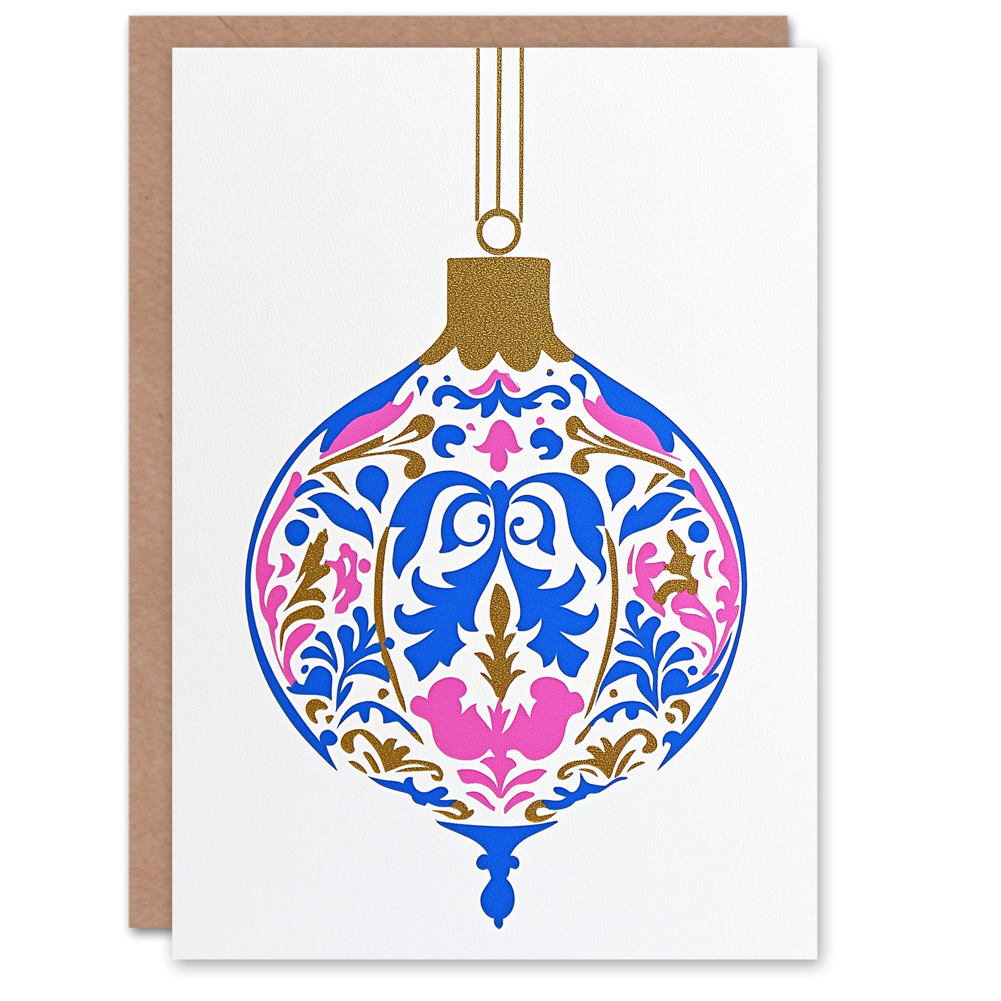 Art Nouveau Bauble Pink Blue Gold Modern Christmas Card