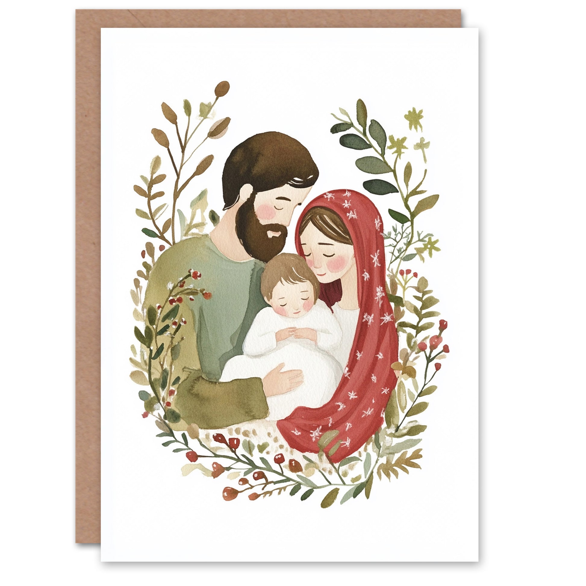 Baby Jesus Mary Joseph Wreath Christmas Card