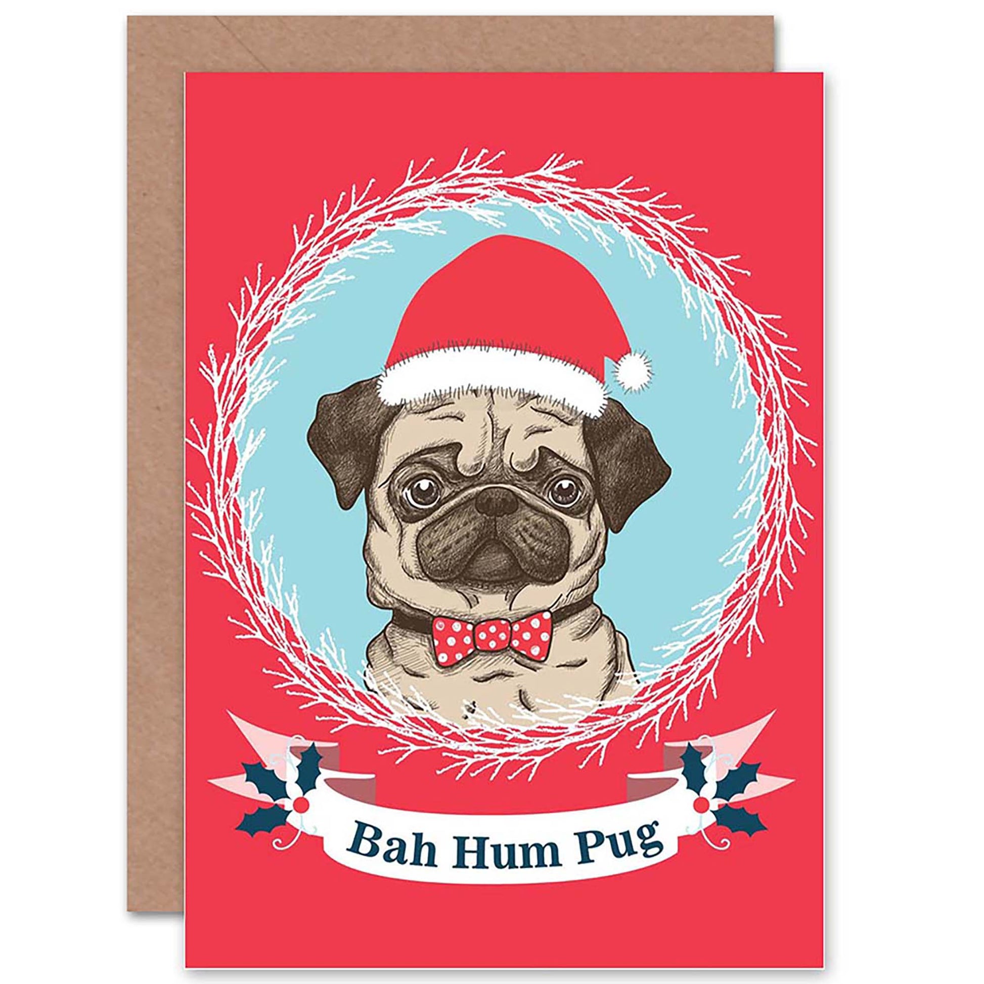 Bah Hum Pug Dog Humbug Santa Christmas Card