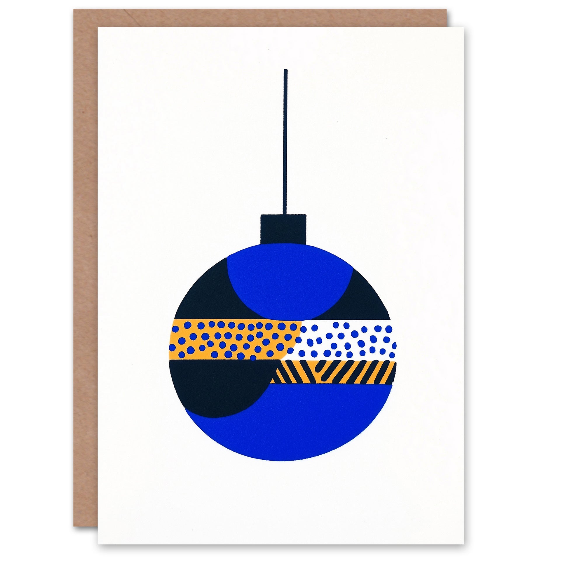 Bauble Blue Orange Modern Ornament Fun Christmas Card