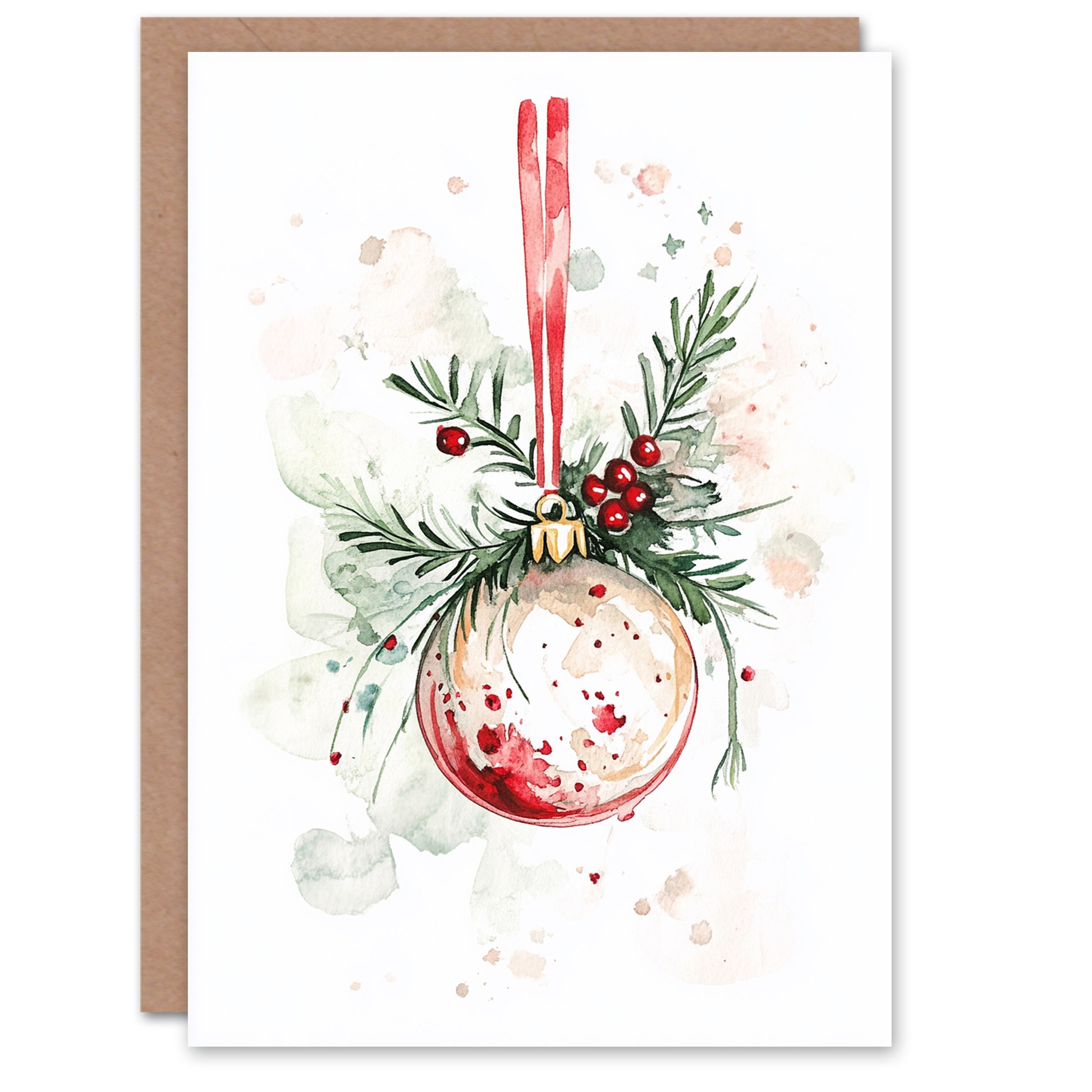 Bauble Holly Pine Ornament Xmas Festive Christmas Card