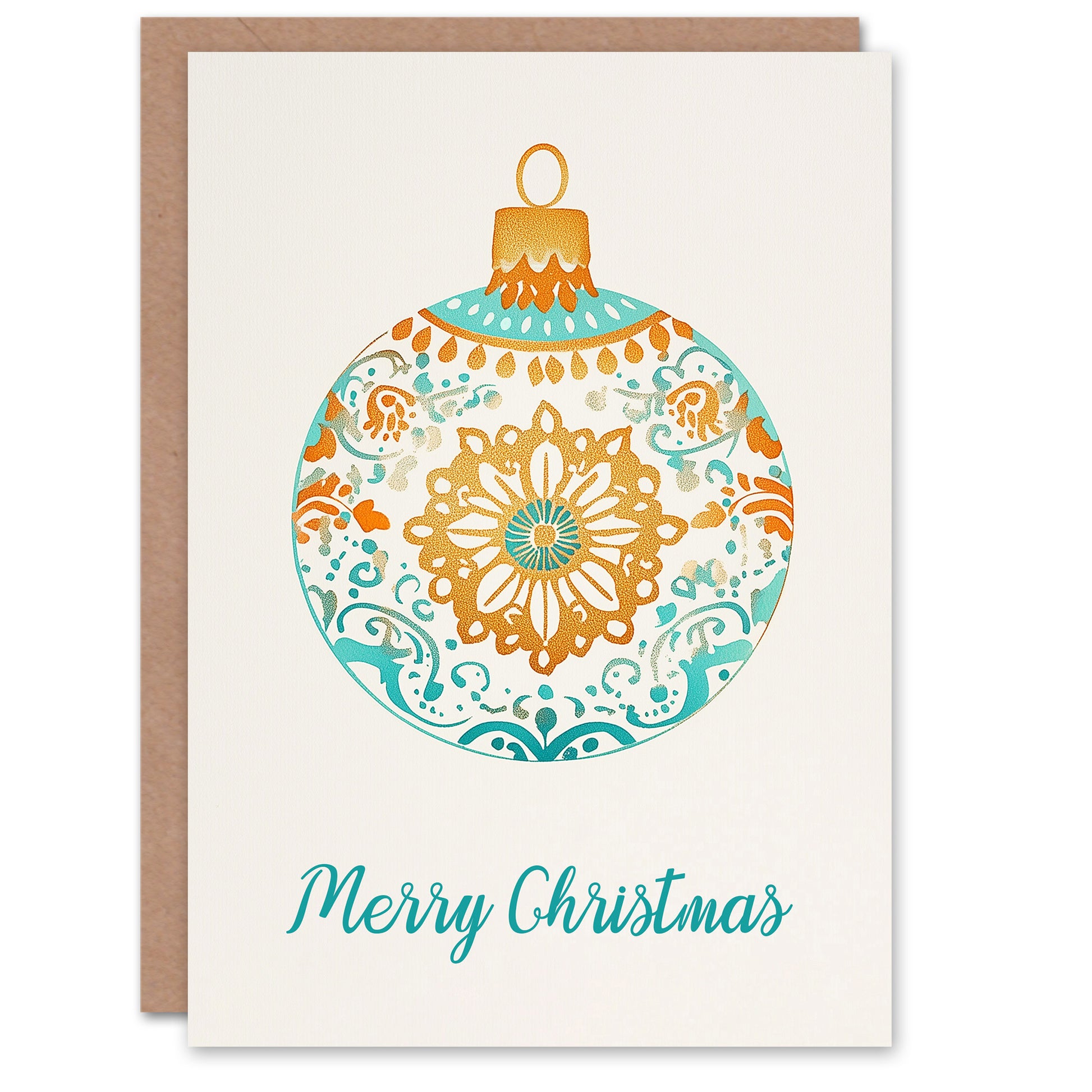 Bauble Ornament Gold Teal Orange Elegant Pattern Christmas Card