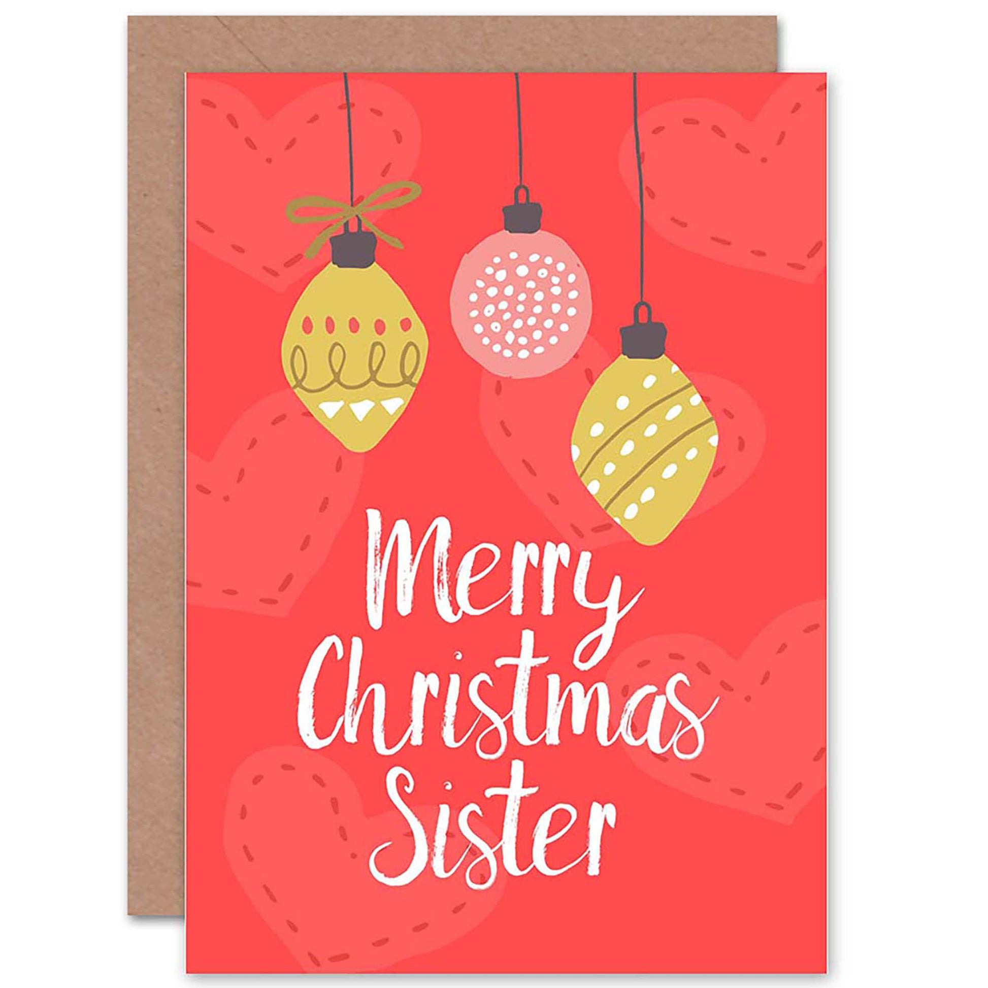 Baubles Love Hearts For Sister Christmas Card