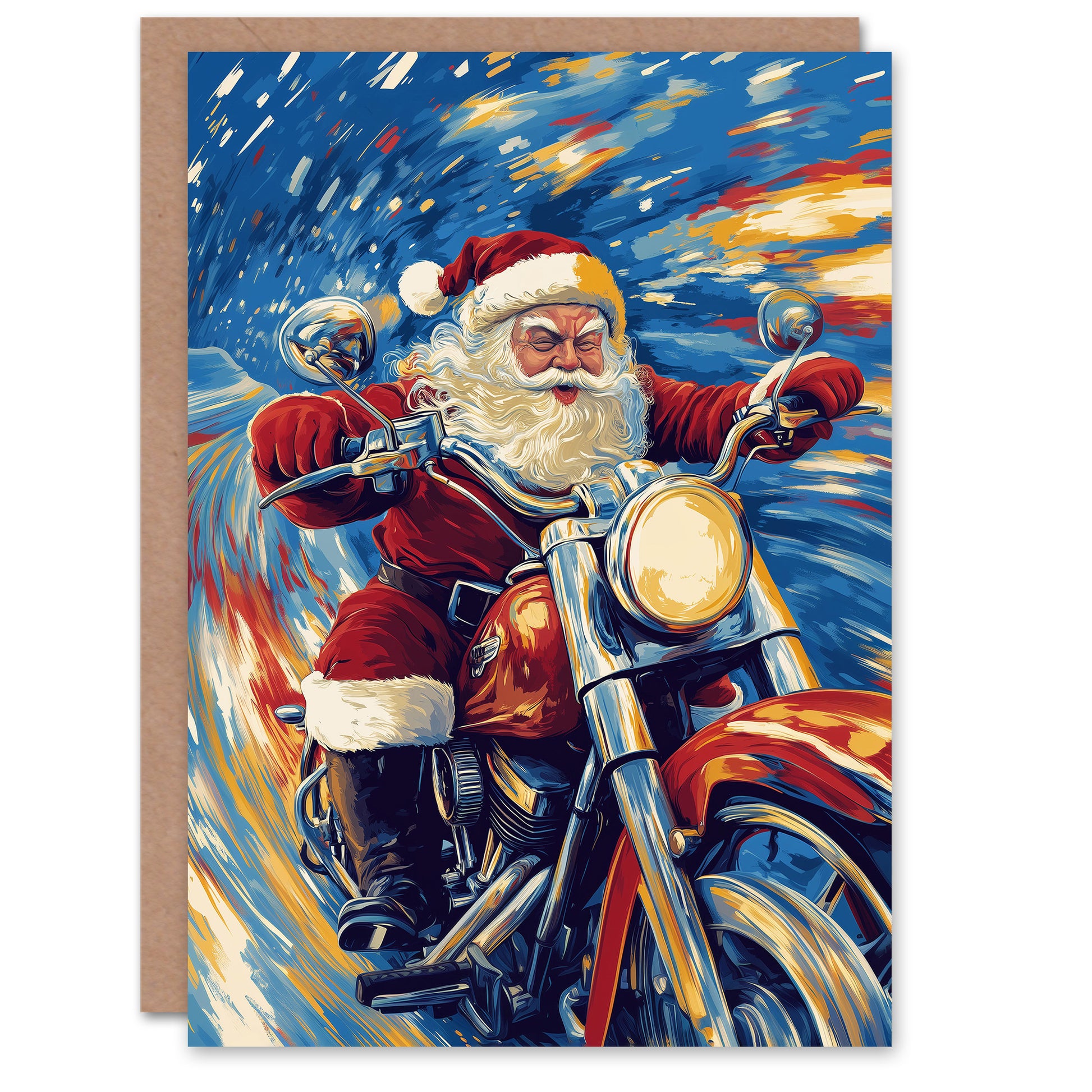 Biker Santa Claus on Motorcycle Funny Bold Christmas Card