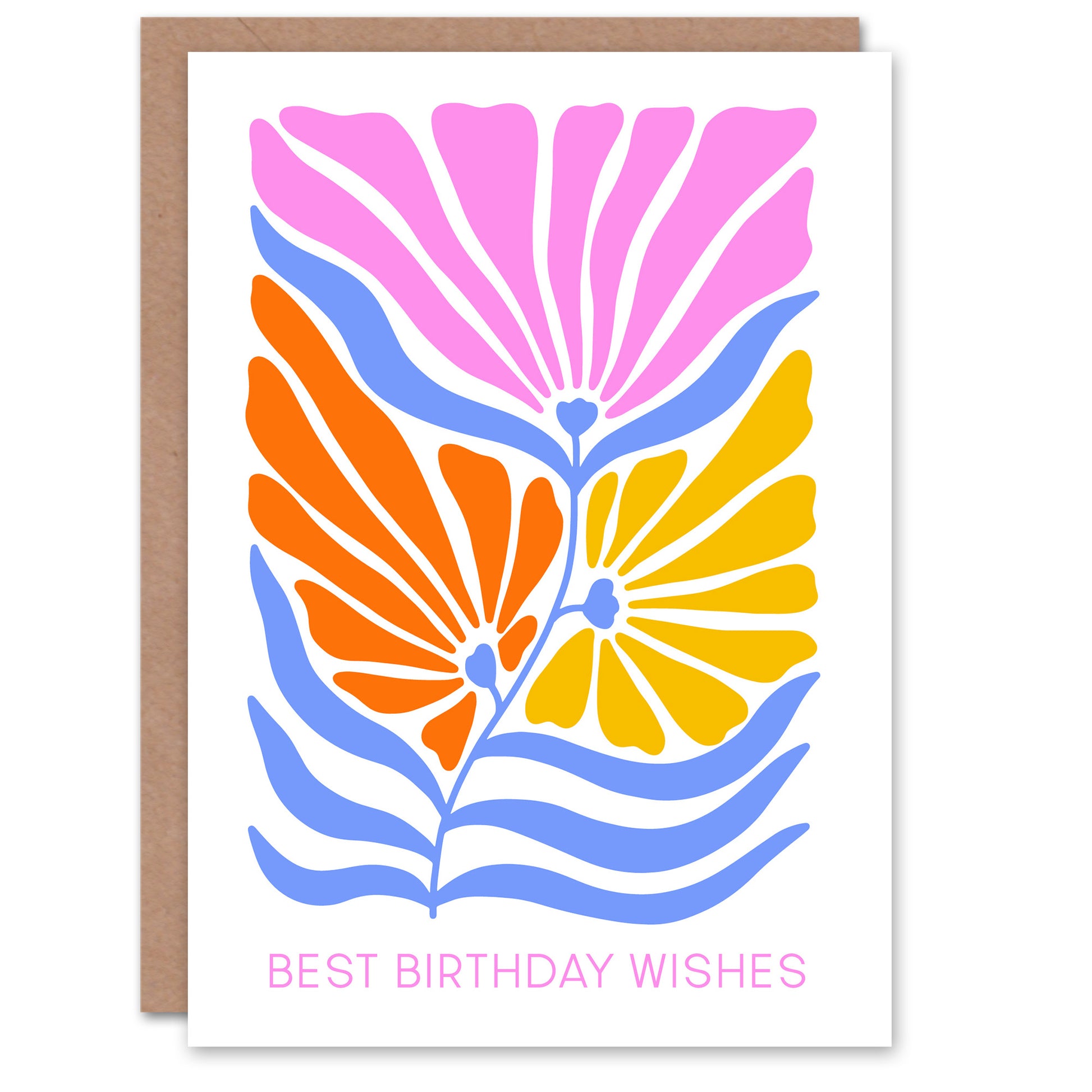 Birthday Card Retro Groovy Flowers Best Wishes Pastel Floral