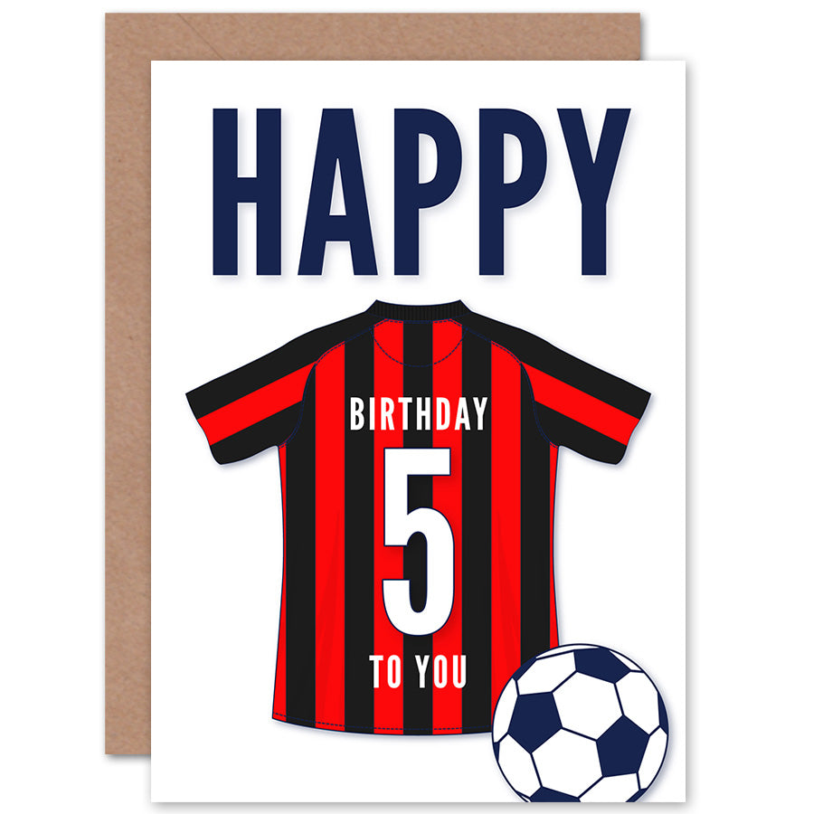 Black Red Striped Football Strip Kit Jersey Age Birthday Card