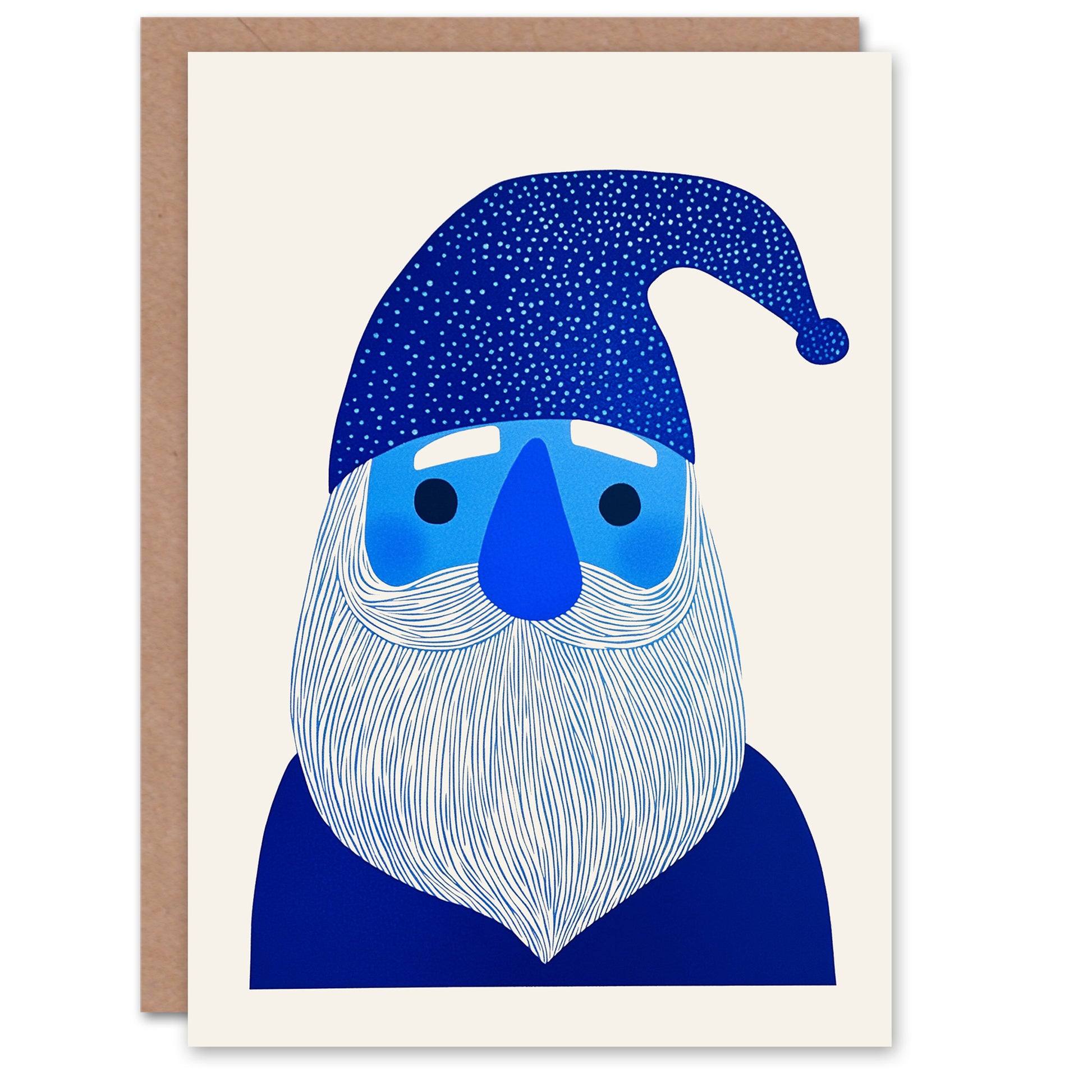 Blue Gnome Santa Claus Bright Folk Art Christmas Card