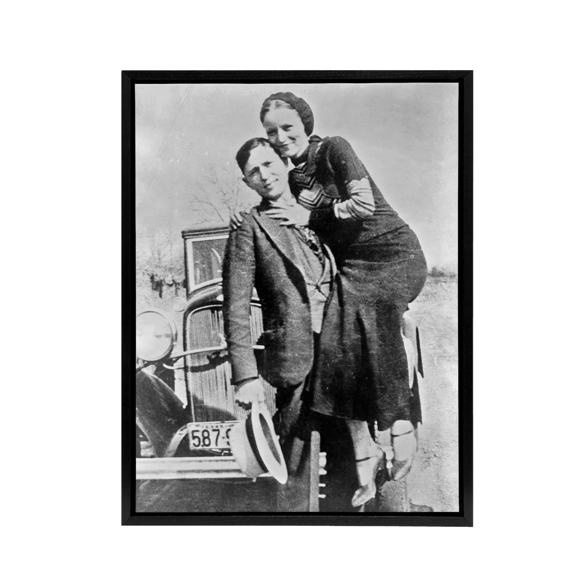 Bonnie and Clyde American Outlaws Black Framed Canvas Wall Art Print