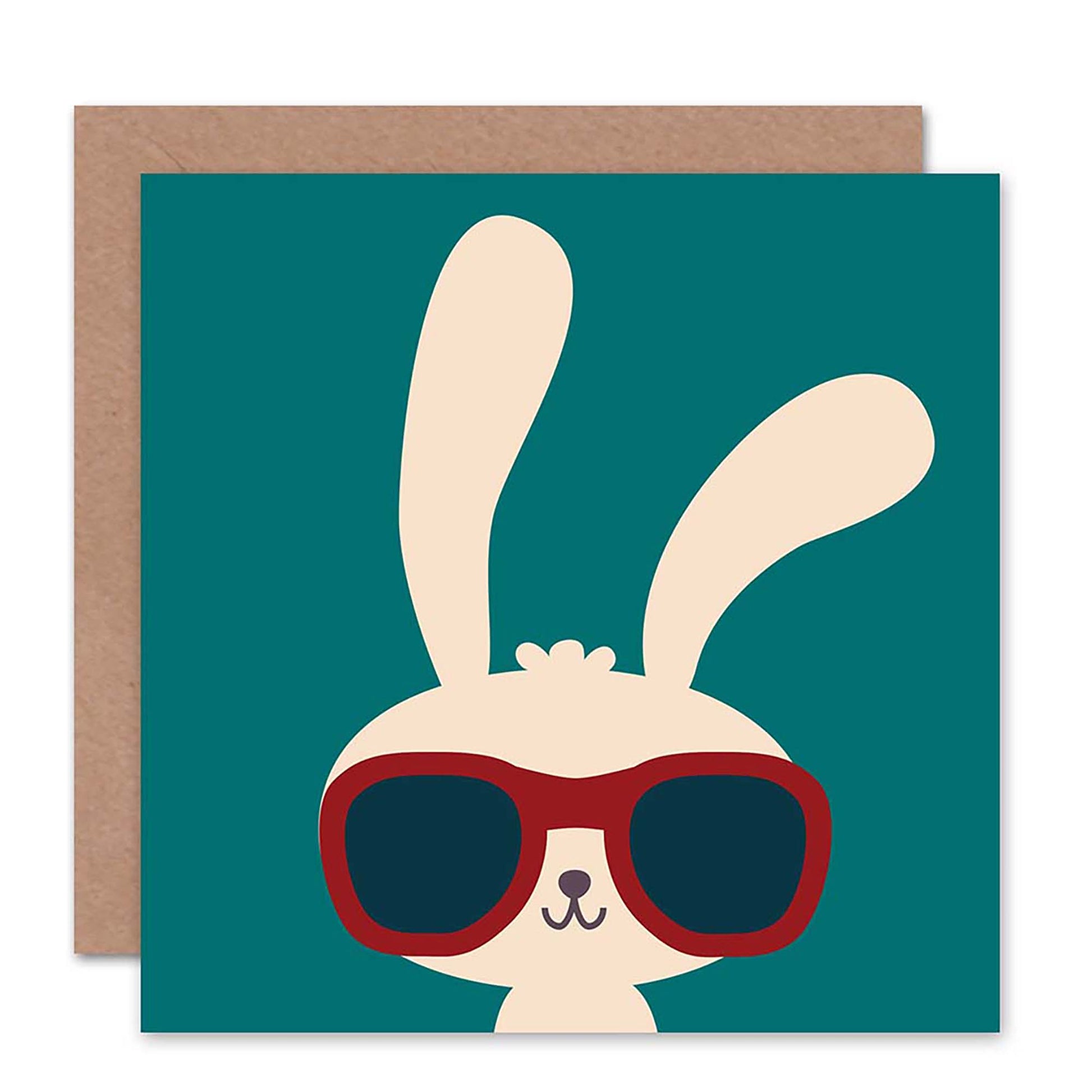 Boy Bunny Teal Cute Happy Sunglasses Easter Greeting Card