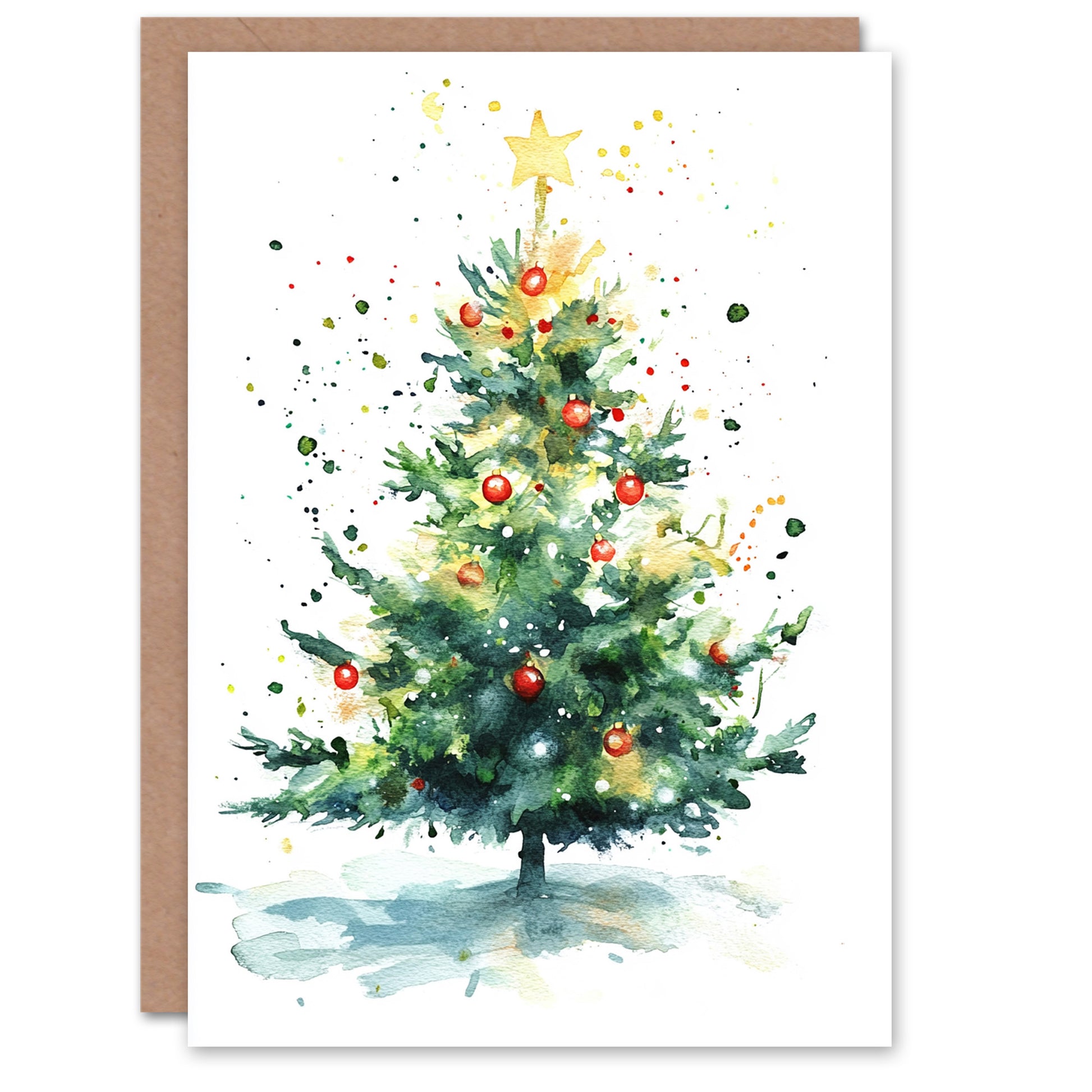 Bright Star Decorated Christmas Tree Festive Xmas Card