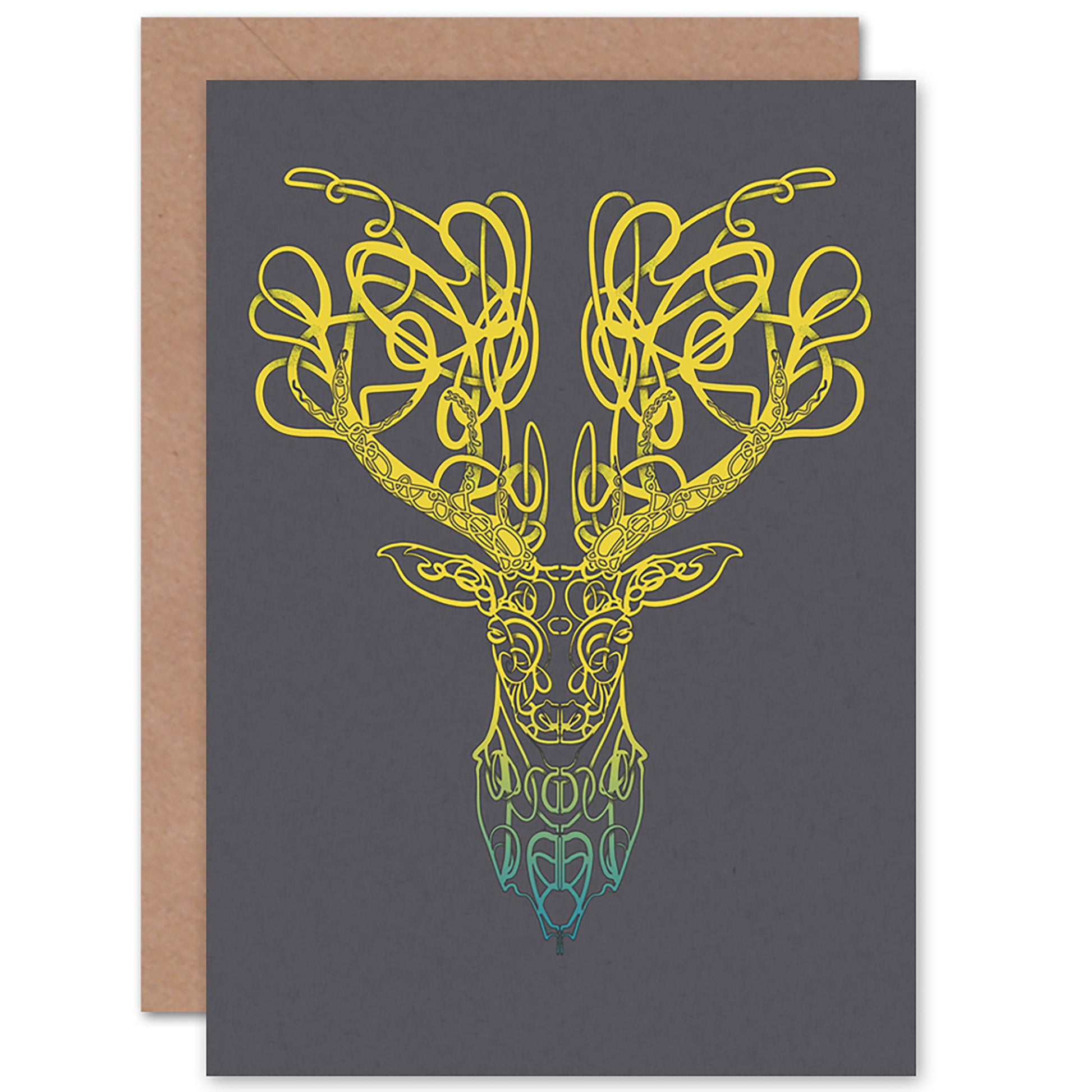 Celtic Knot Stag Head Blue Yellow Gradient Animal Greetings Card