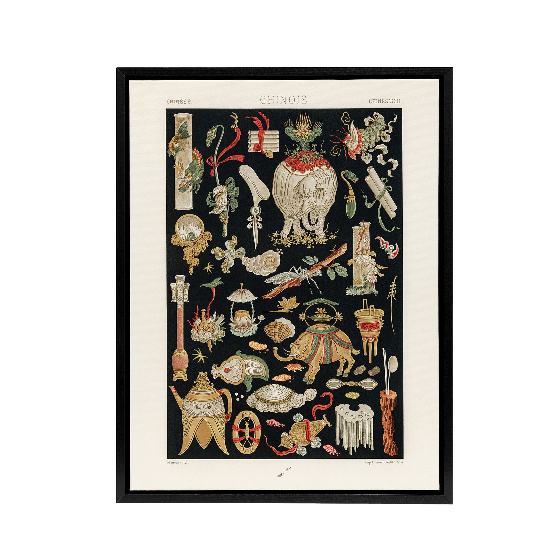 Chinese Ornamental Objects Racinet Vintage Black Framed Canvas Wall Art