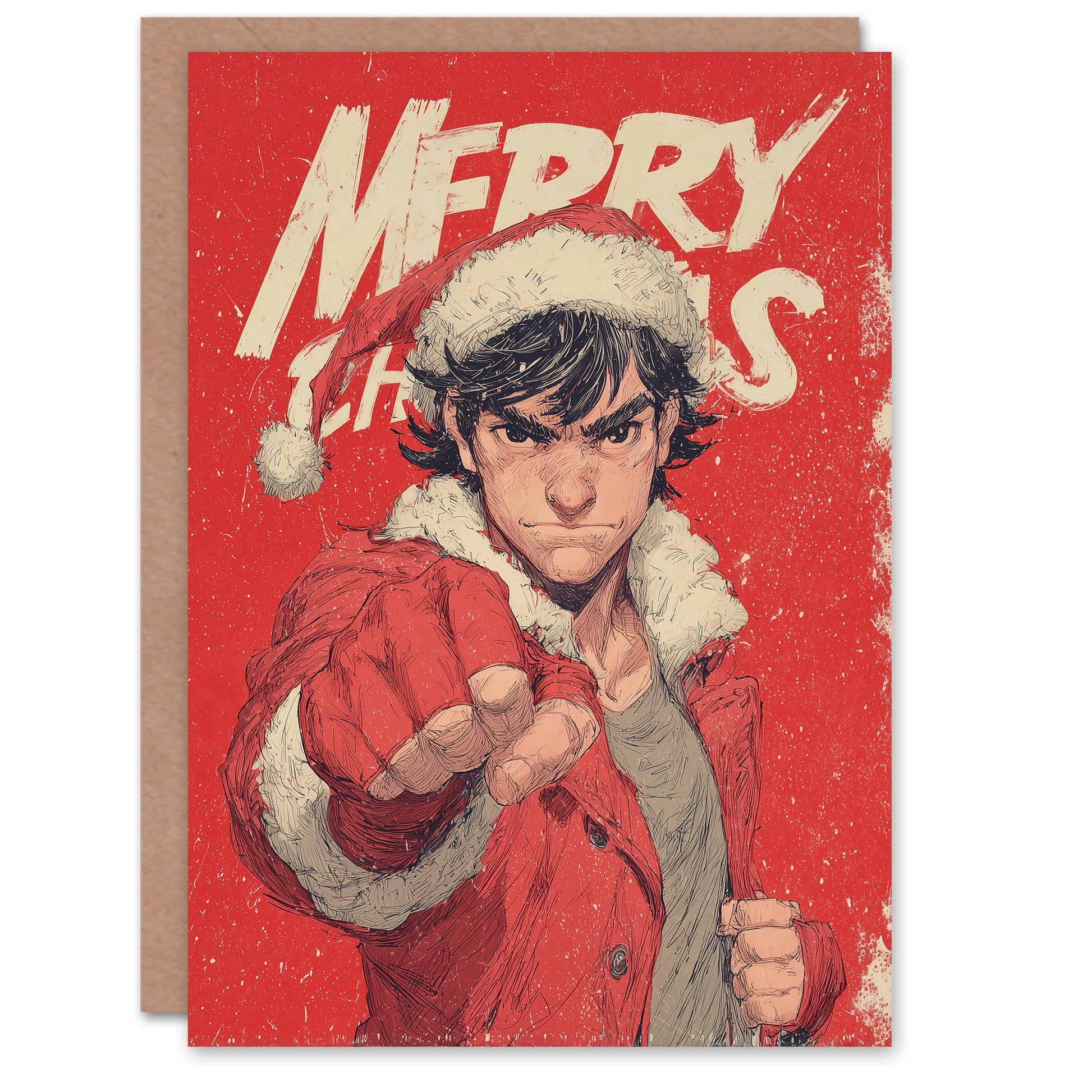 Christmas Card Cool Young Anime Fighter Punch Fist Bump