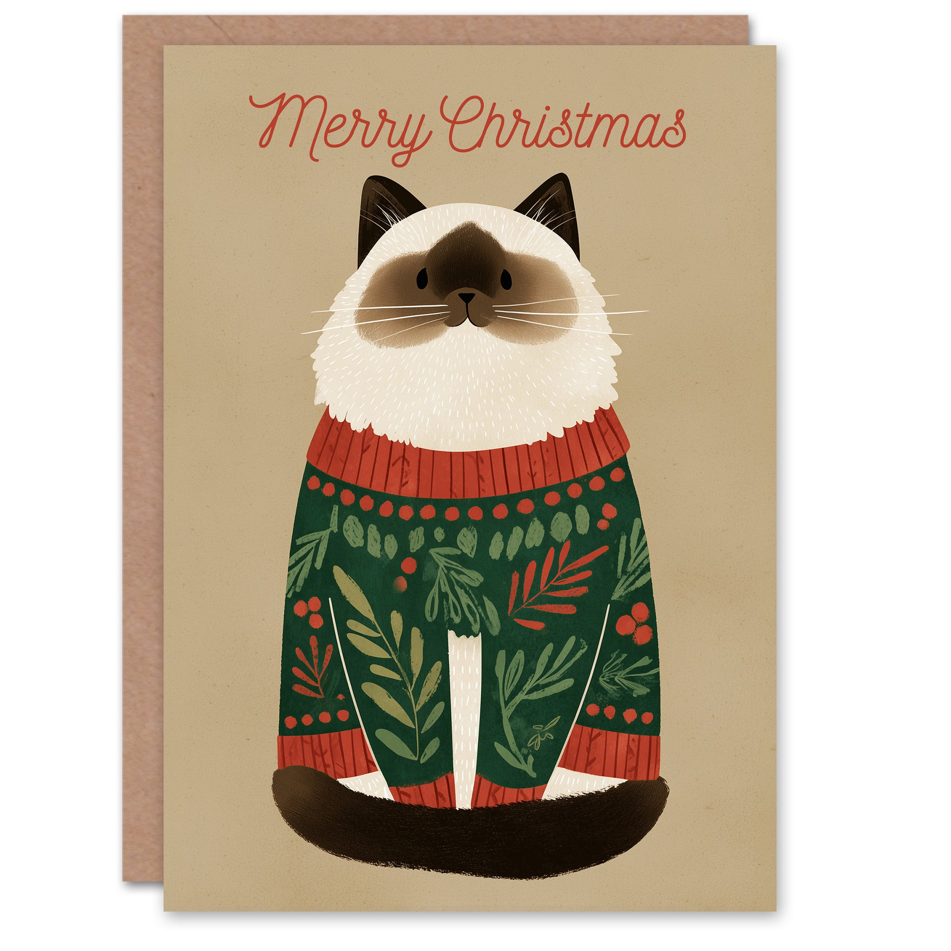 Christmas Card Cute Brown Point Ragdoll Cat in Festive Sweater