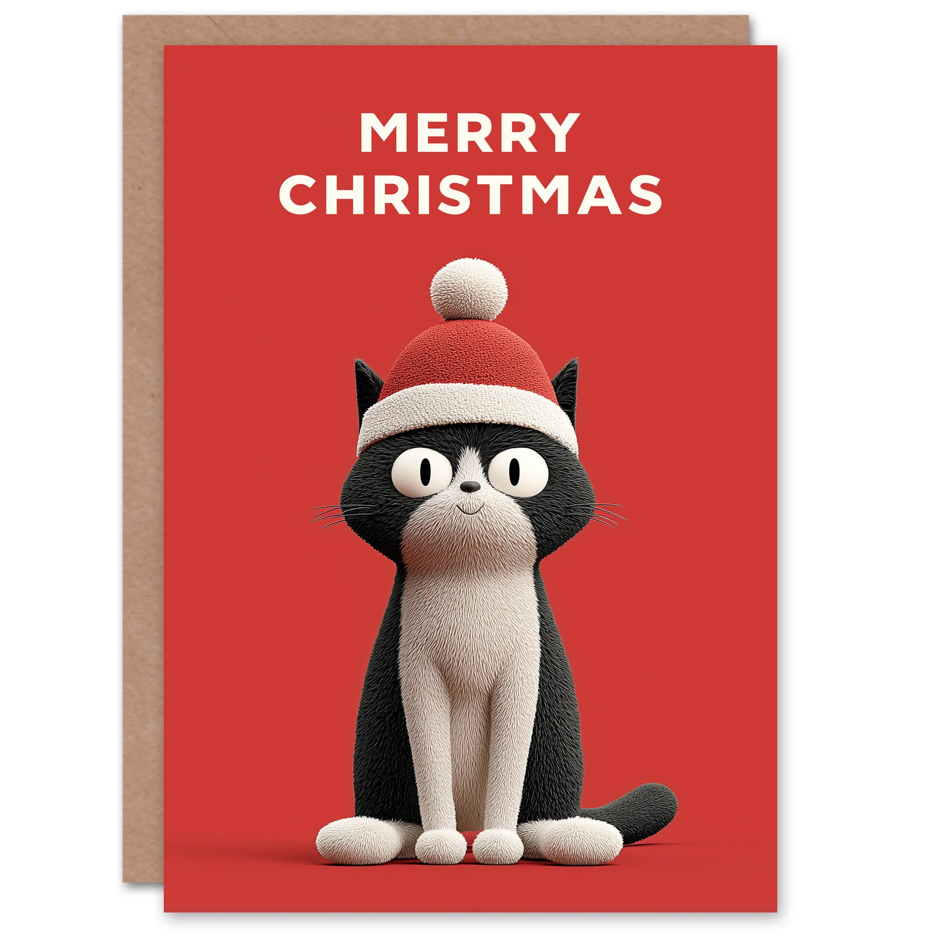 Christmas Card Tuxedo Cat Lover Cute Pet Wearing Santa Hat