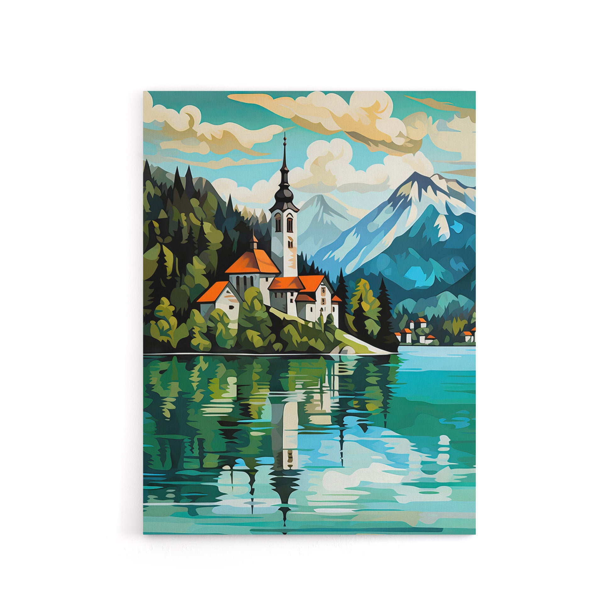 Church on Lake Bled Slovenia Island Canvas Wall Art Print