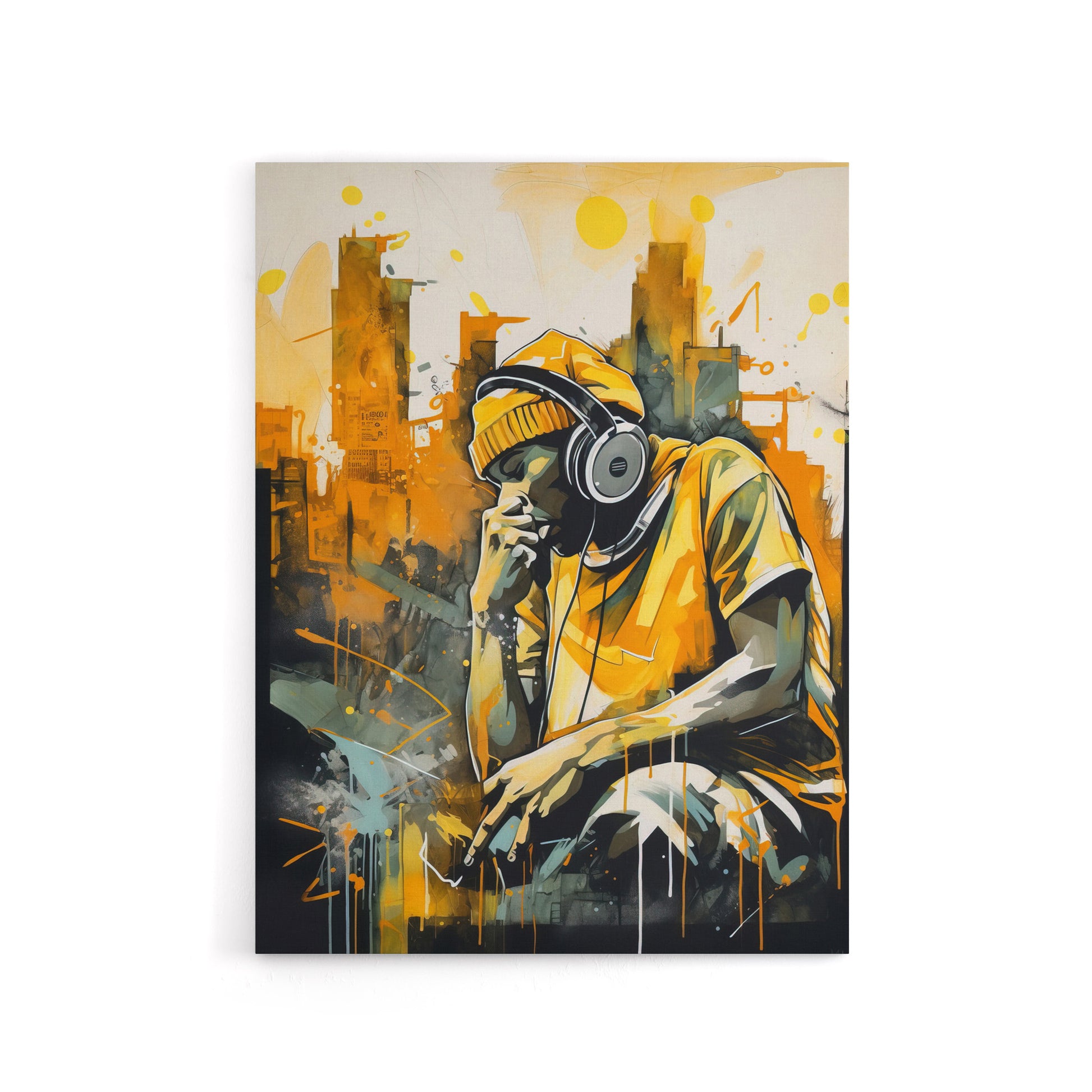 “Cityscape Young Man Wearing Headphones Listening to Music Watercolour” comes to life as a wrapped canvas print crafted for ready-to-hang display. This wrapped canvas print elevates your home with artful detail and vibrant colour. Versatile and ready to hang, it suits living rooms, bedrooms, offices, or creative studios. A stylish choice that adds personality and visual interest to your walls. Urban silhouette paired with a reflective listener, cool modern vibe for music enthusiasts.