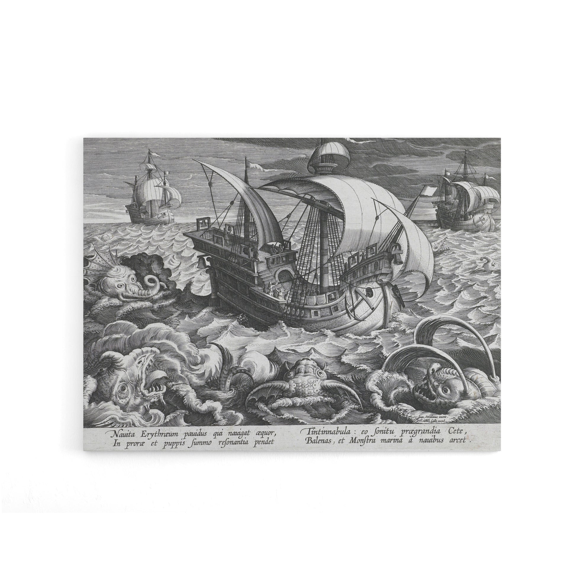 Bring mythical drama to your home with this wrapped canvas print of Adriaen Collaert's engraving of sea monsters attacking a ship. A Renaissance vision of maritime danger and imagination, it's perfect wall art for nautical collectors, fantasy fans, and history lovers. Ready to hang, this canvas adds intrigue and conversation-starting character to studies, offices, or living rooms. Intriguing maritime engraving print, conversation piece for offices or eclectic spaces.