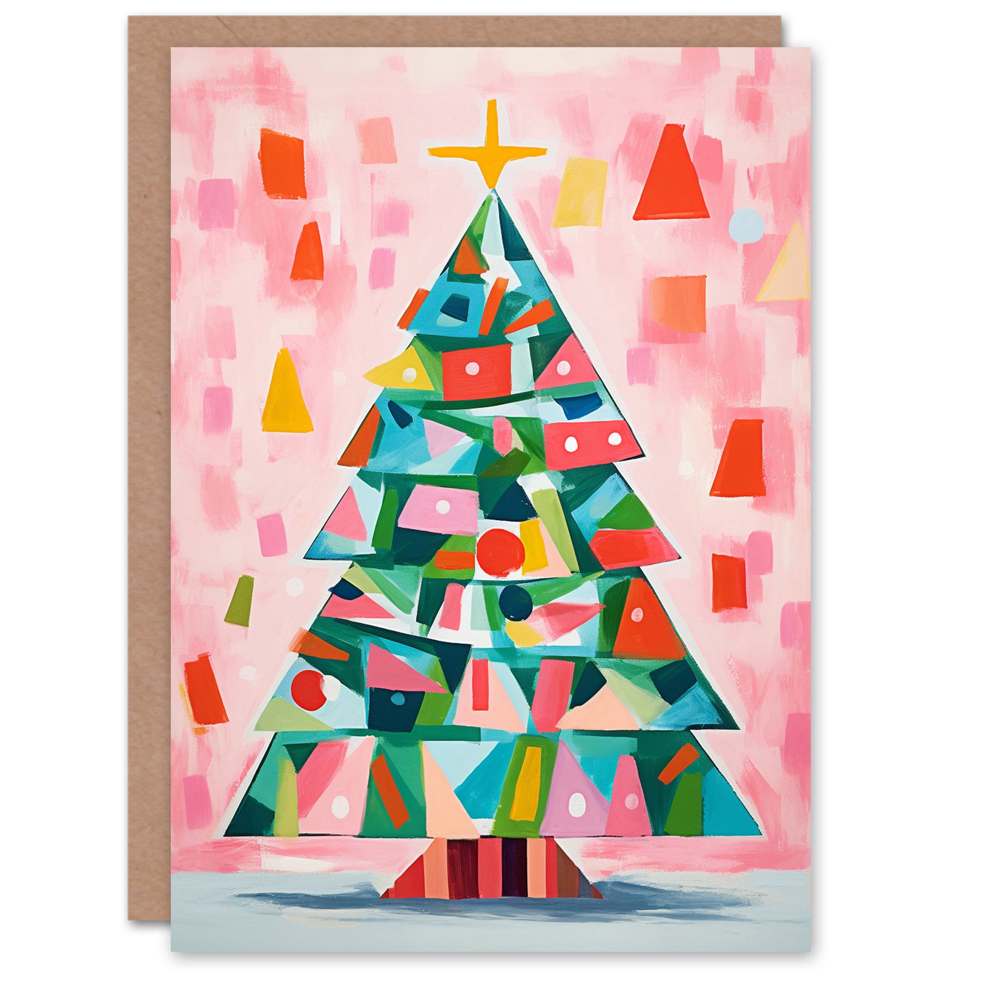 Colourful Abstract Geometric Tree Painting Christmas Card