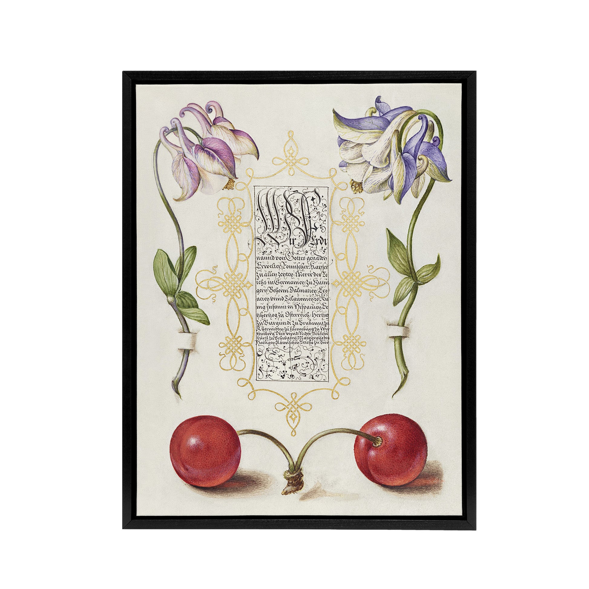 Columbines and Sweet Cherries Calligraphy Framed Canvas Wall Art Print