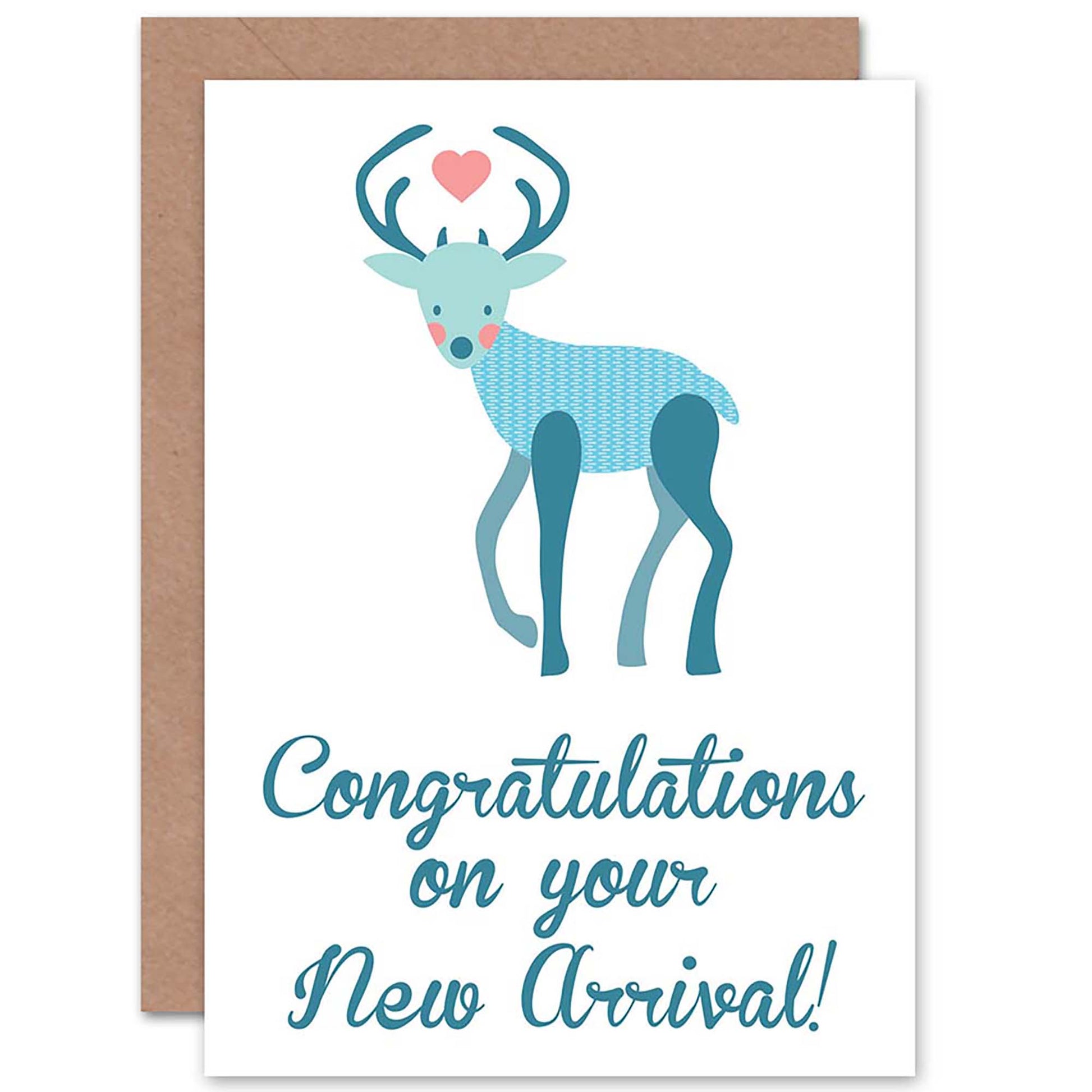 Congratulations New Arrival Cute Stag Deer Cartoon Boy New Baby Card