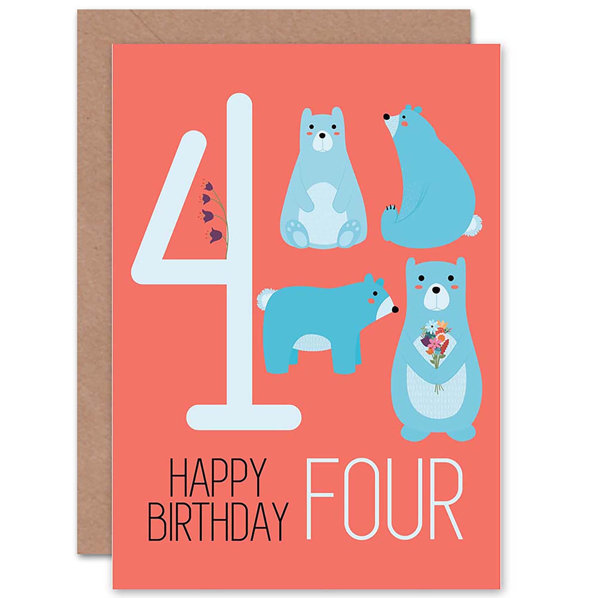 Counting Bears Age 4 Year Old 4th Child Kids 4th Kids Birthday Card