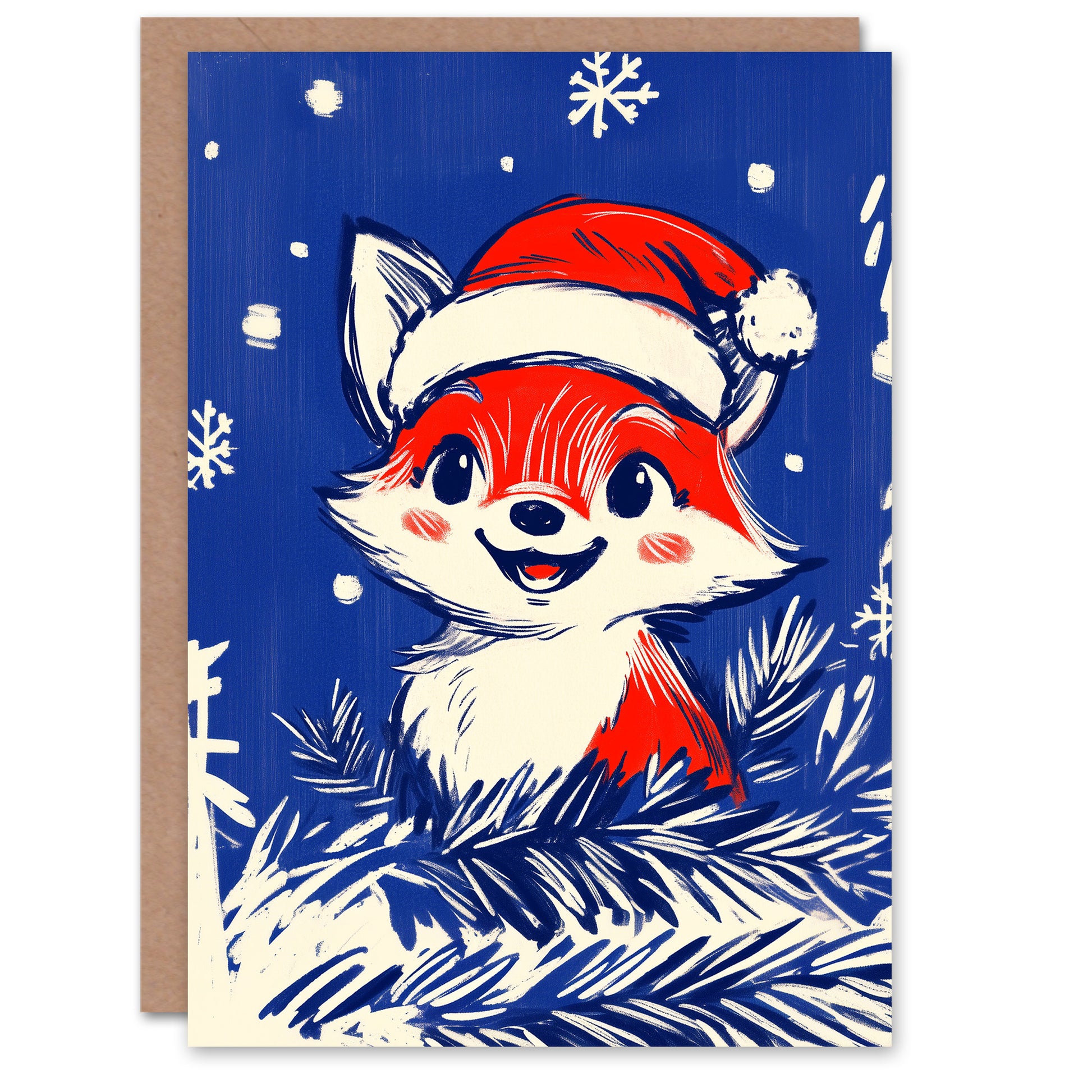 Cute Baby Fox With Santa Hat Cartoon Christmas Card