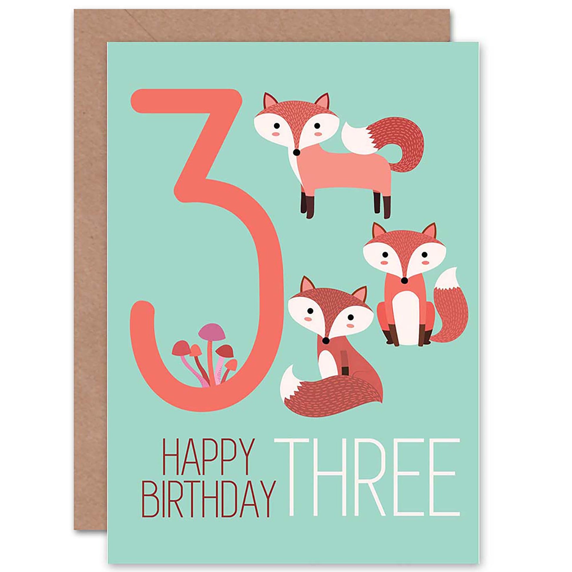 Cute Fun Foxes Age 3 Kids Birthday Card