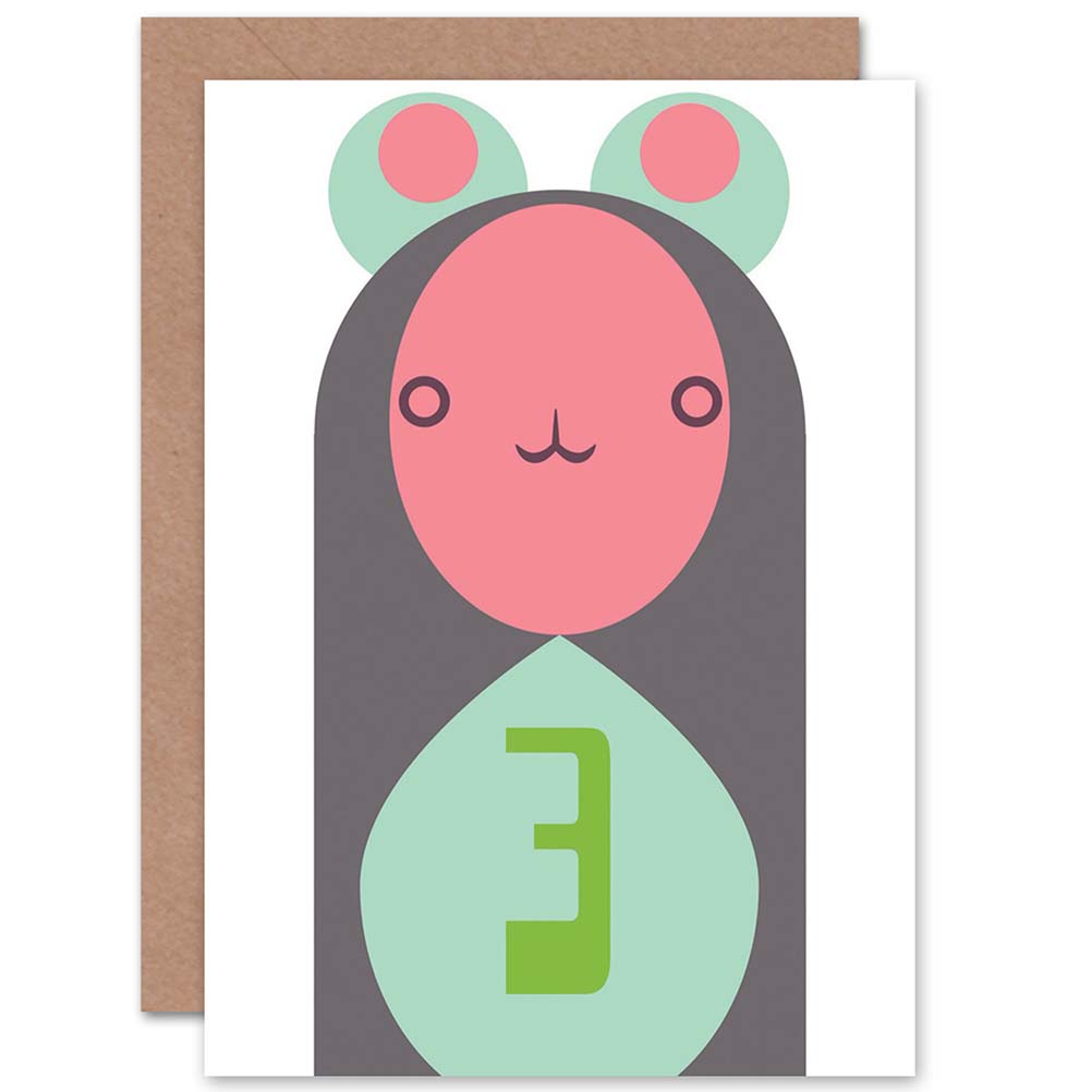 Cute Geometric Cartoon Bear Age 3 Kids Birthday Card