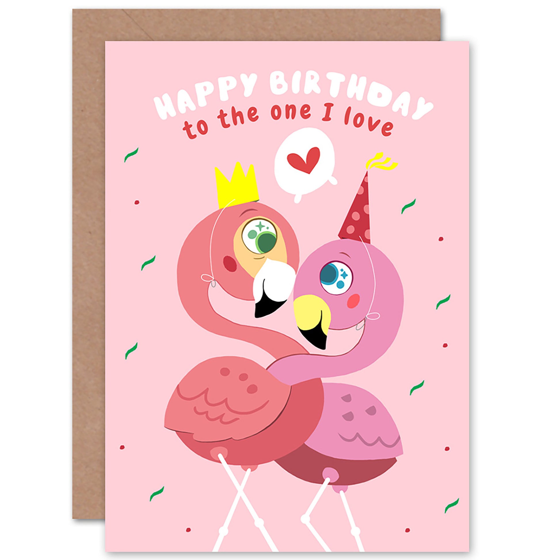 Cute Kawaii Flamingo To The One I Love Birthday Card