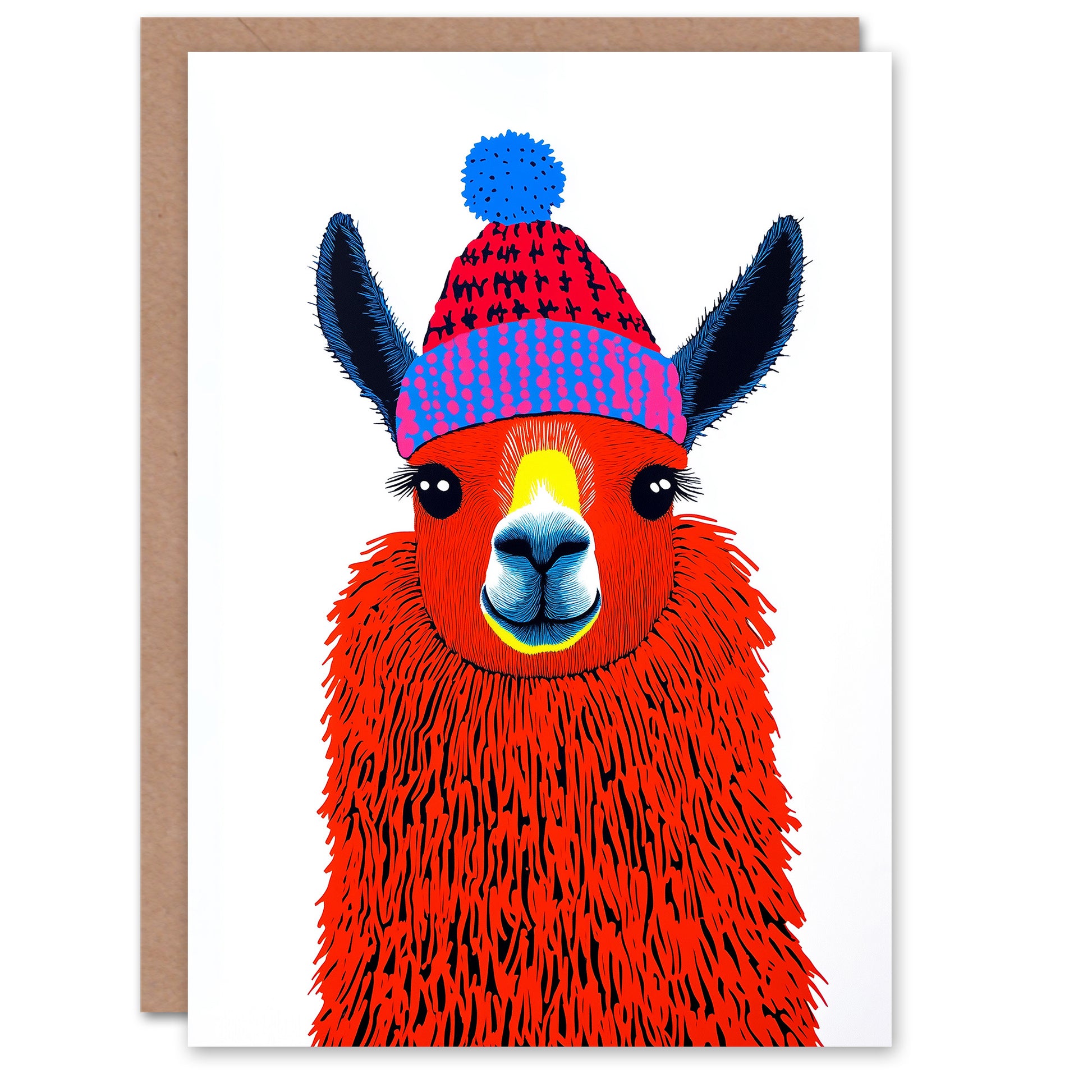 Cute Llama With Winter Hat Bright Vibrant Pop Art Christmas Card