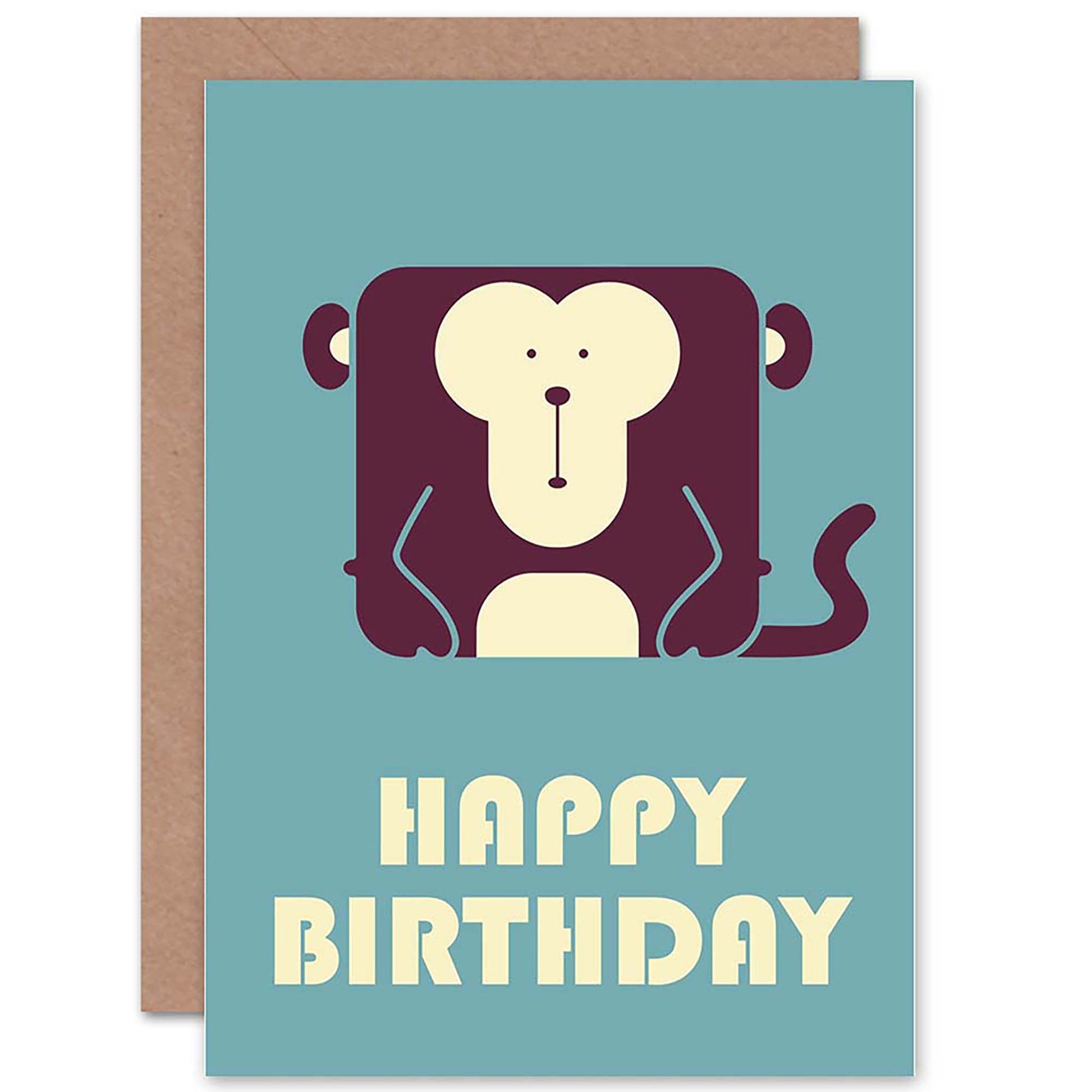 Cute Monkey Geometric Cartoon Kids Kids Birthday Card