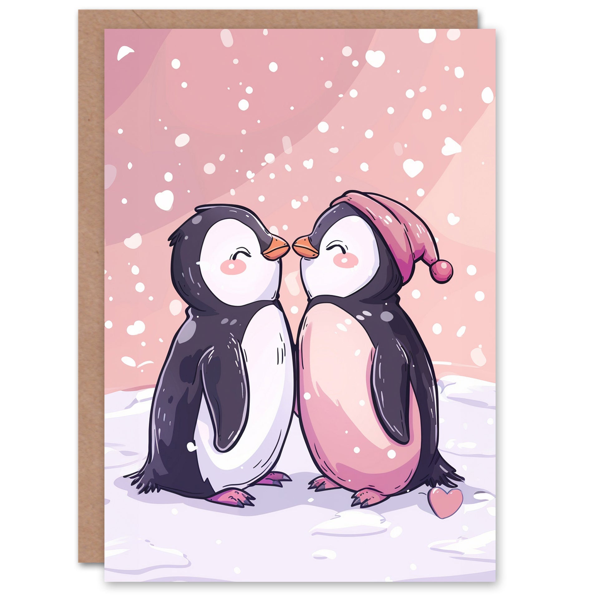 Cute Penguin Couple Winter Love Cartoon Christmas Card