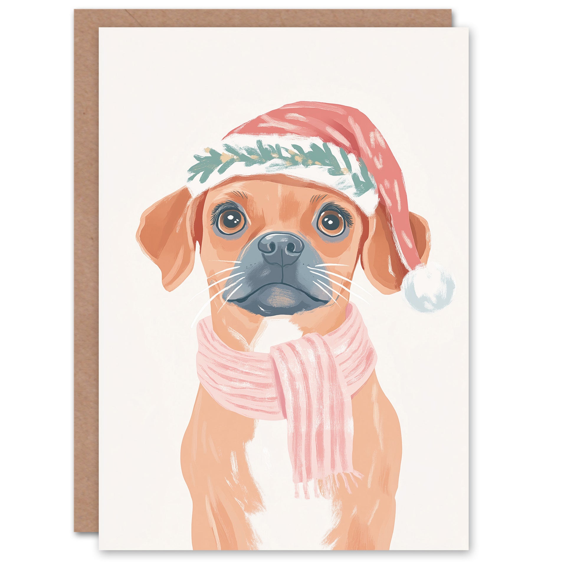 Cute Puppy Santa Hat Winter Scarf Boxer Dog Lover Christmas Card