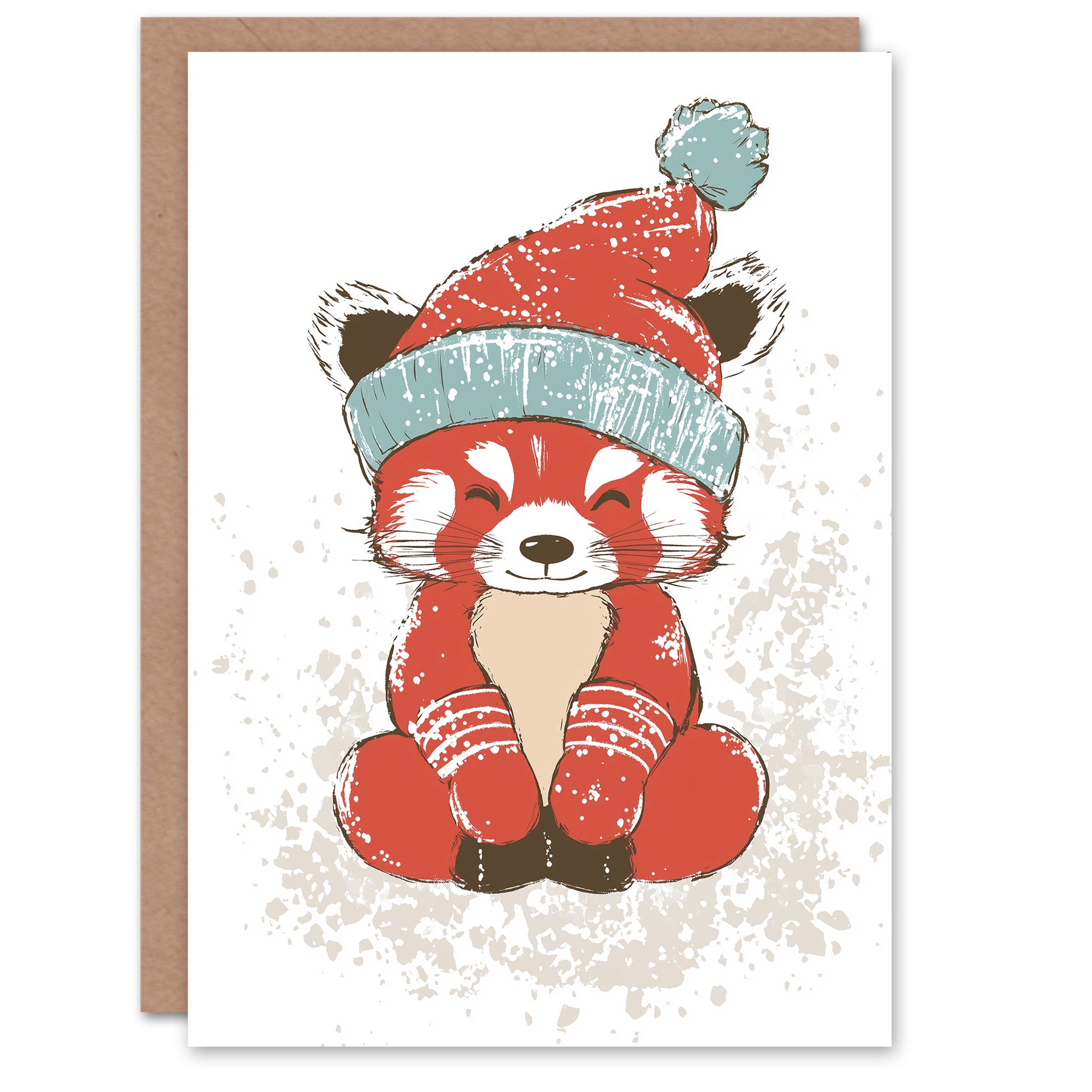Cute Red Panda With Winter Hat Cartoon Christmas Card