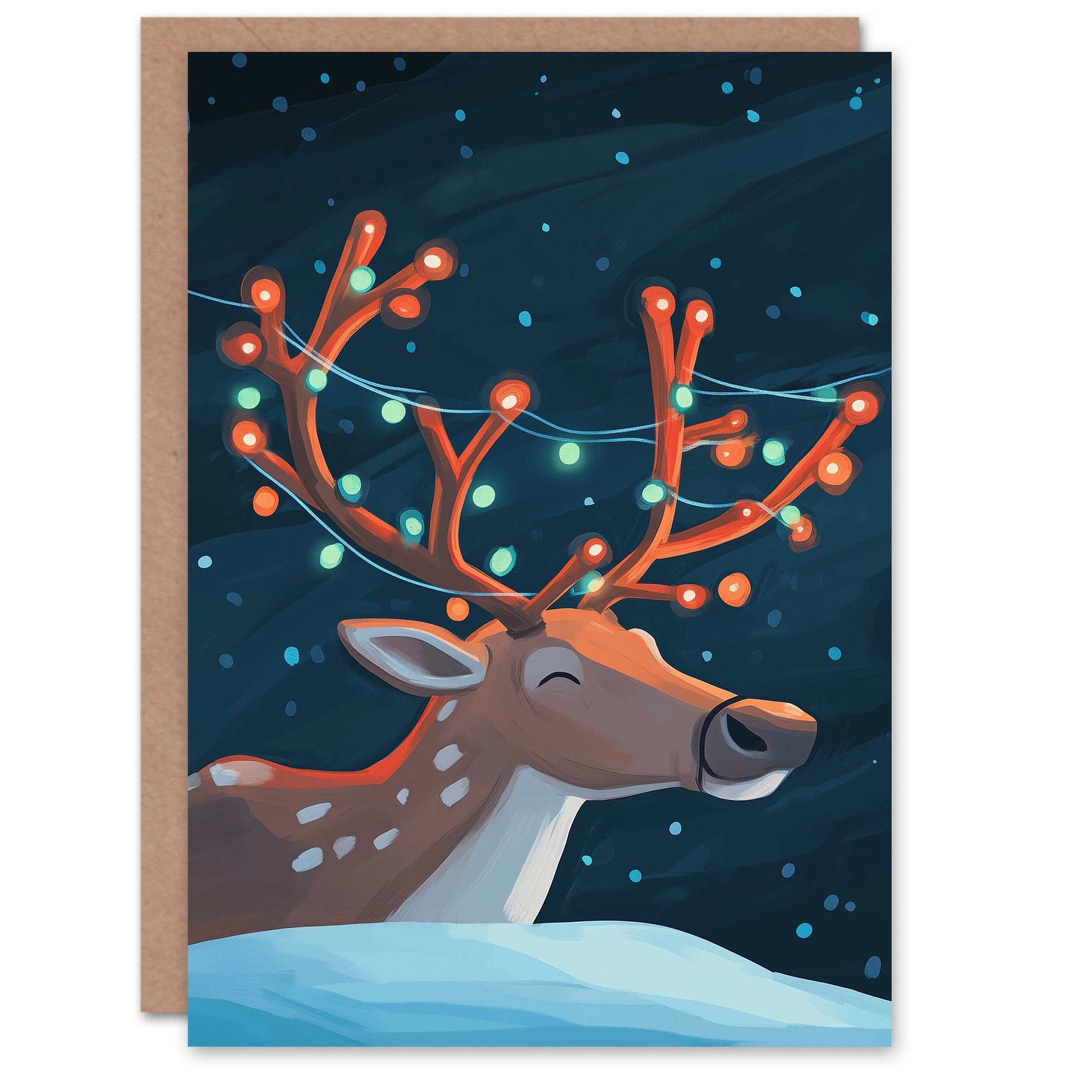 Cute Reindeer With String Lights On Antlers Christmas Card