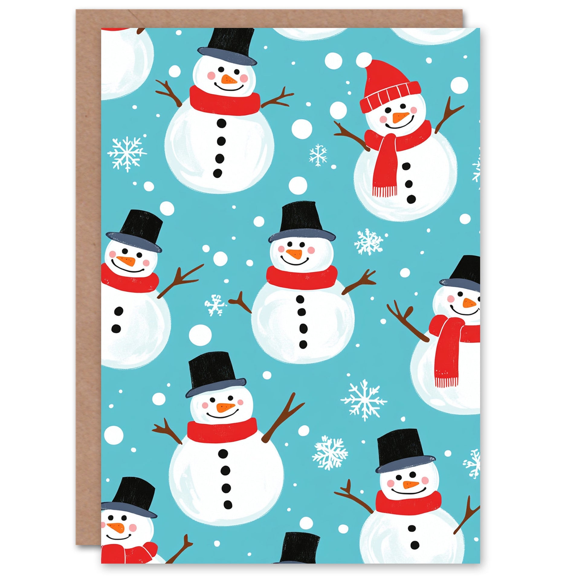 Cute Snowman and Snowflake Pattern Blue Christmas Card