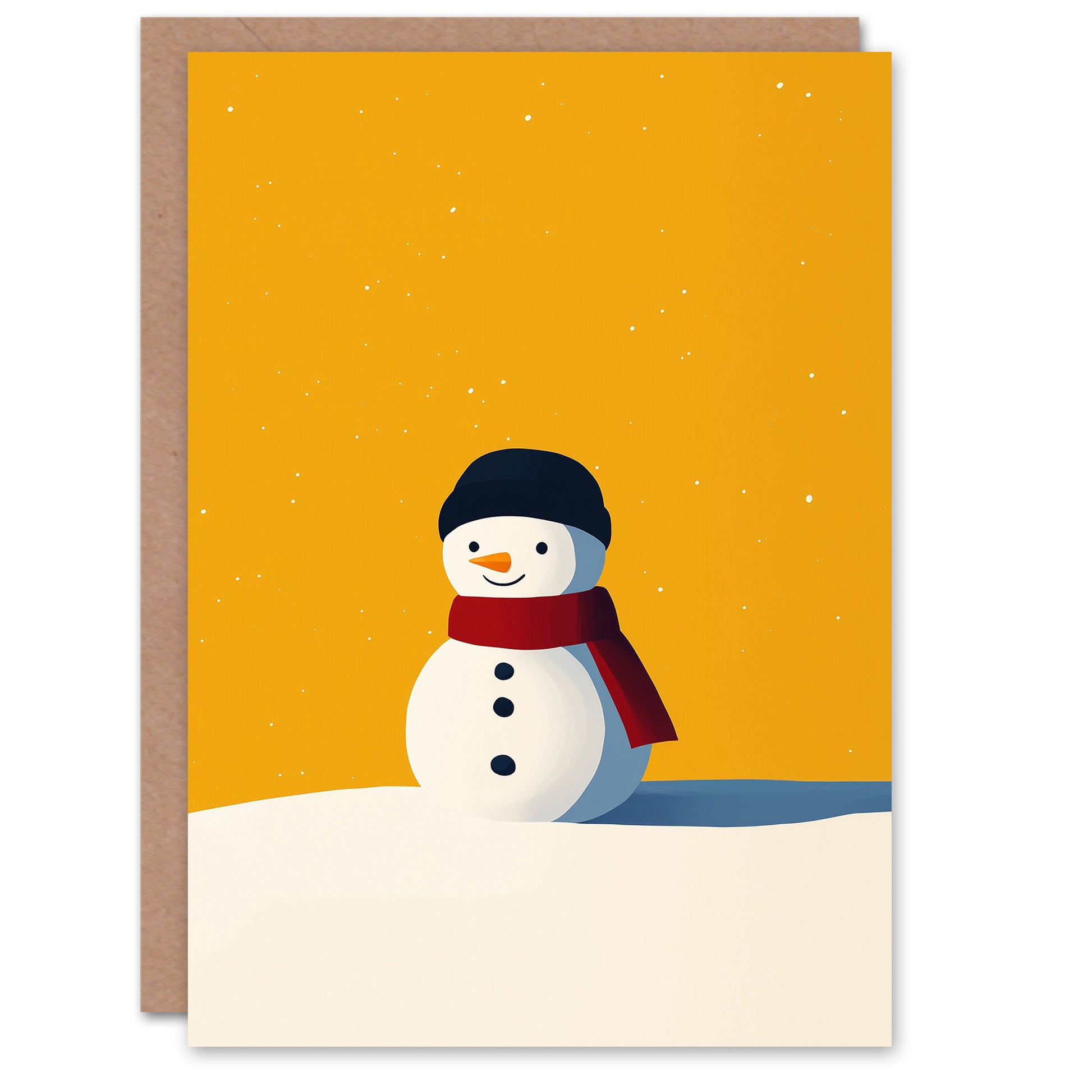 Cute Snowman Winter Sunrise Snow Modern Bold Christmas Card