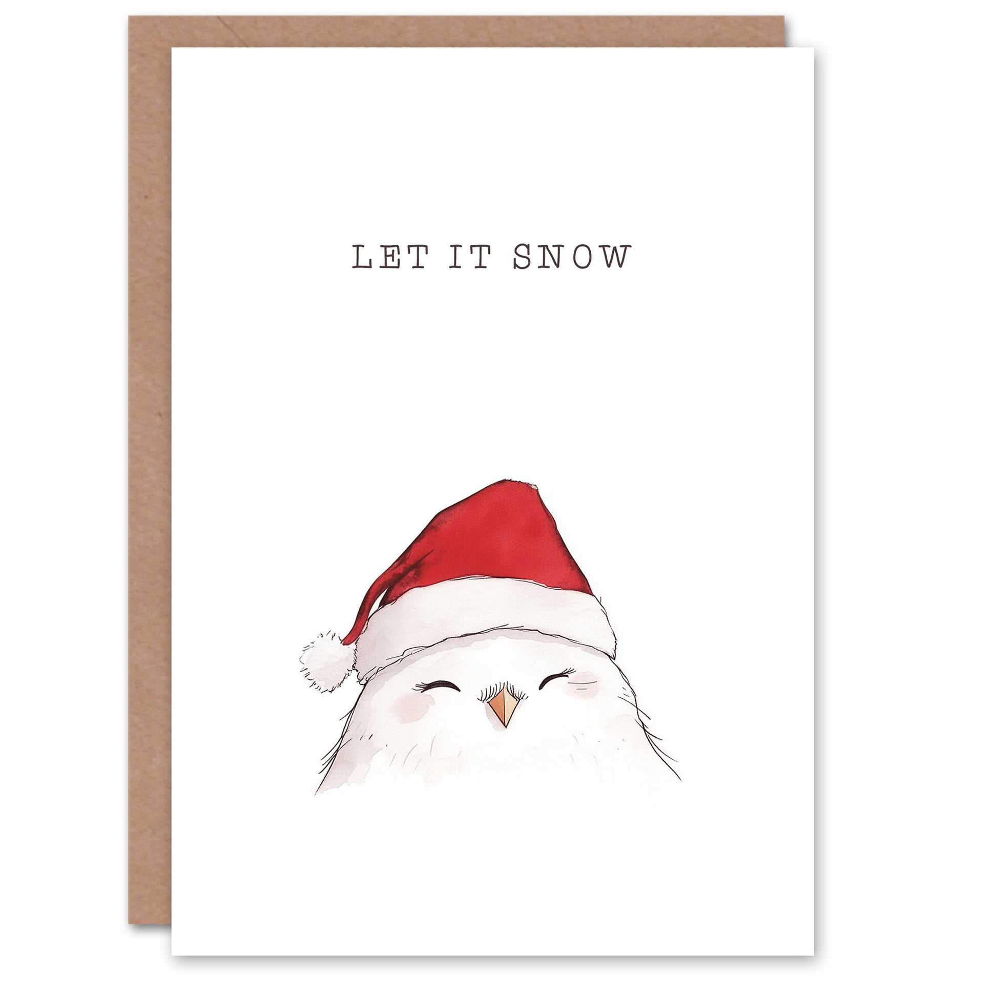 Cute Snowy Owl With Santa Hat Let It Snow Festive Christmas Card